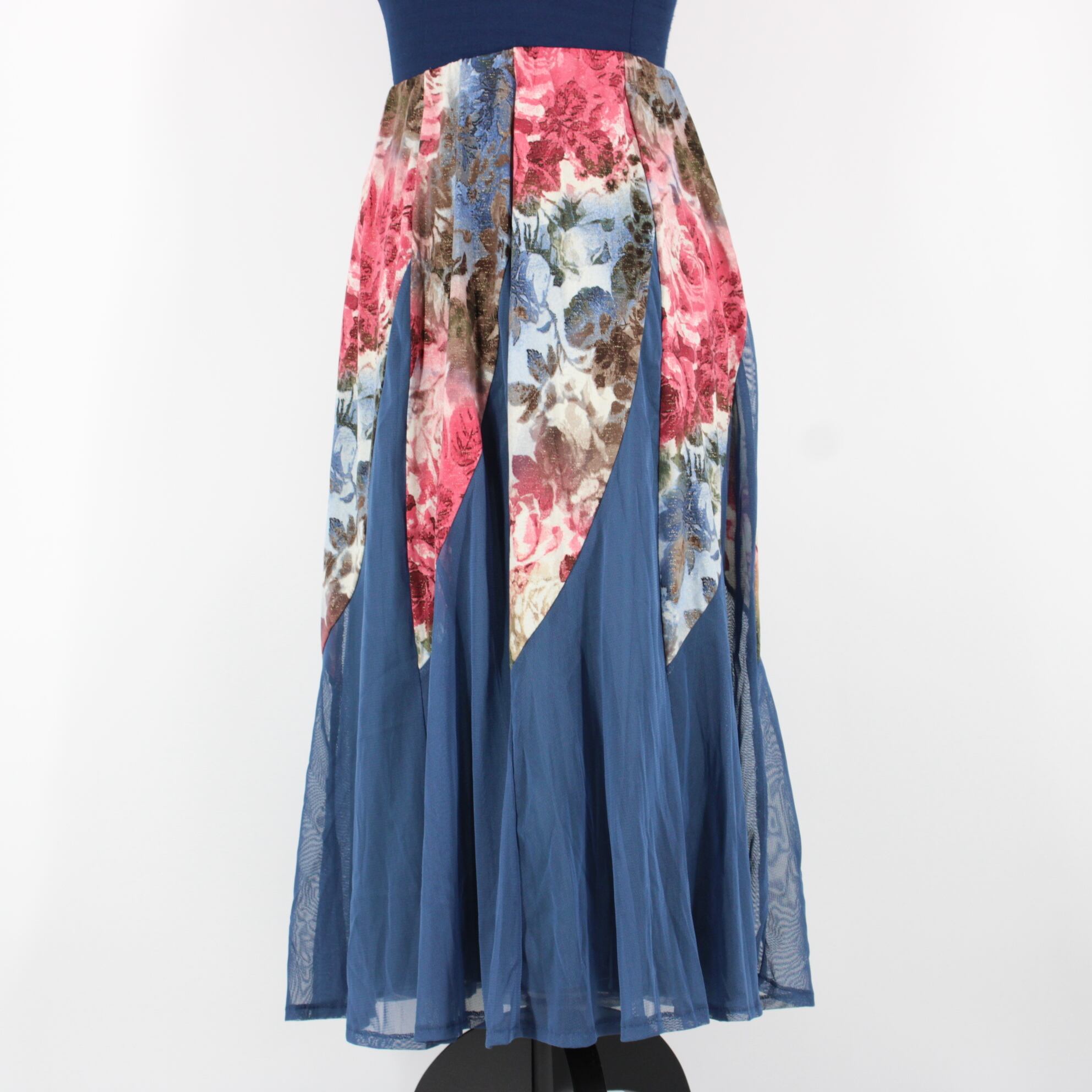【美品 社交ダンス衣装】スカート lilico 青 ブルー 花柄 シック かわいい 可愛い 上品 気品 清楚 くすみカラー フェミニン