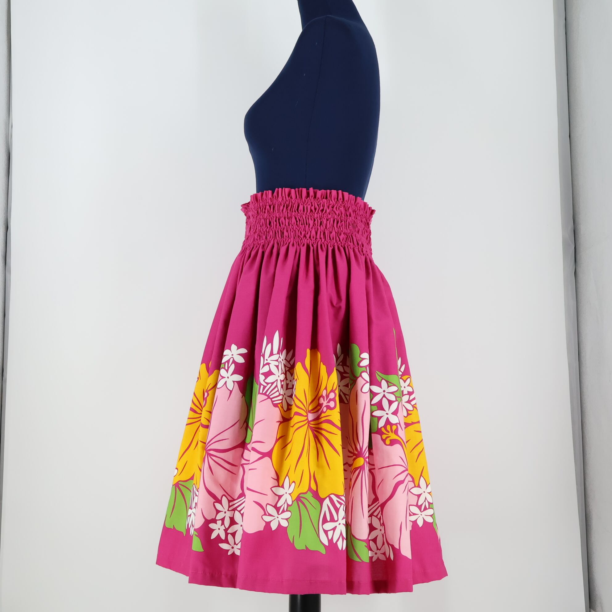 【フラダンス衣装】マゼンタ パウスカート ハイビスカス柄 ティアレ柄 花柄 黄 ピンク 紫 緑 華やか 鮮やか 白 アロハ 可愛い