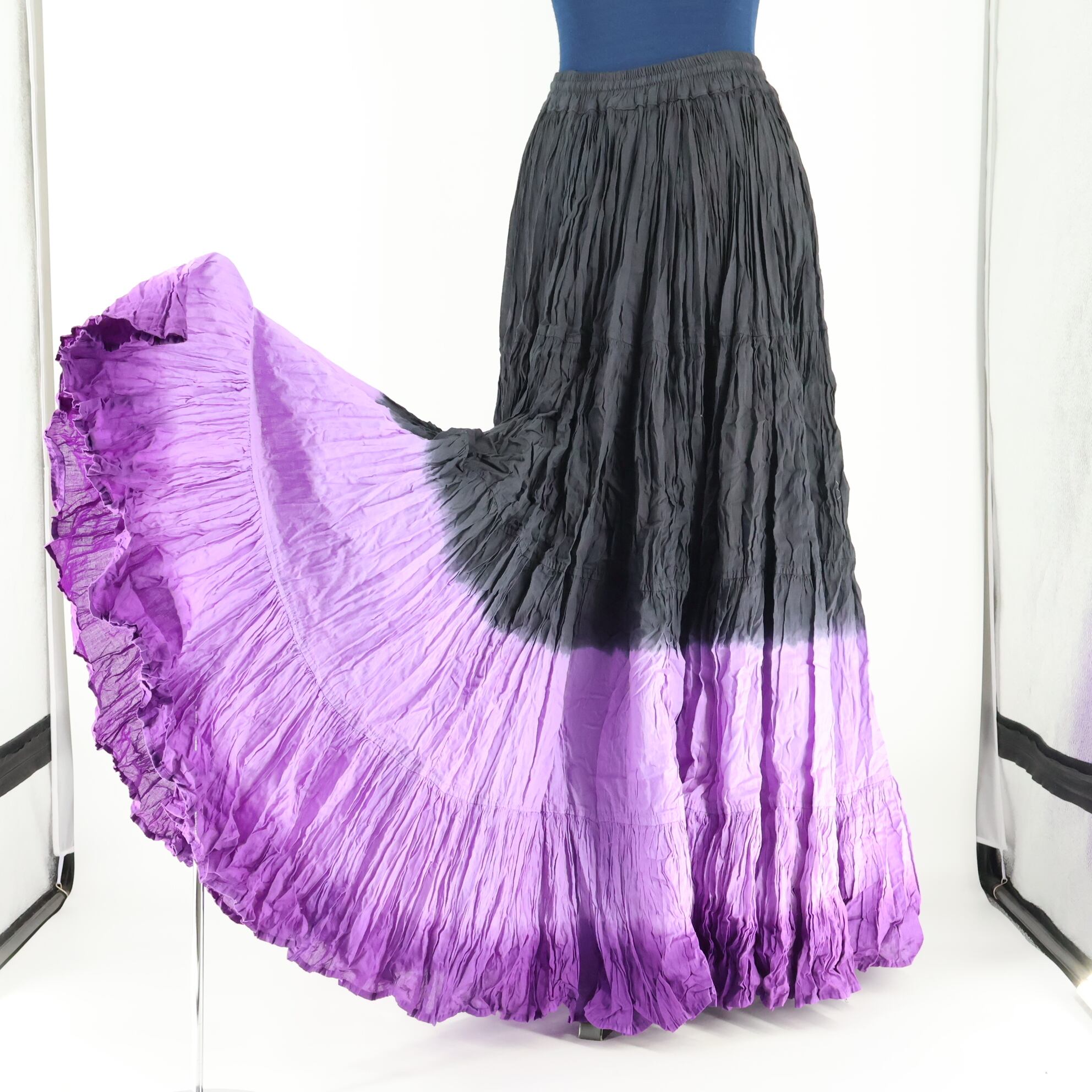 【インド製 ベリーダンス用衣装】ブラック×パープル WEVEZ ジプシースカート ボリューム 黒 紫 フリル コットン 鮮やか 綺麗 Mサイズ 大きく広がる裾 ロング
