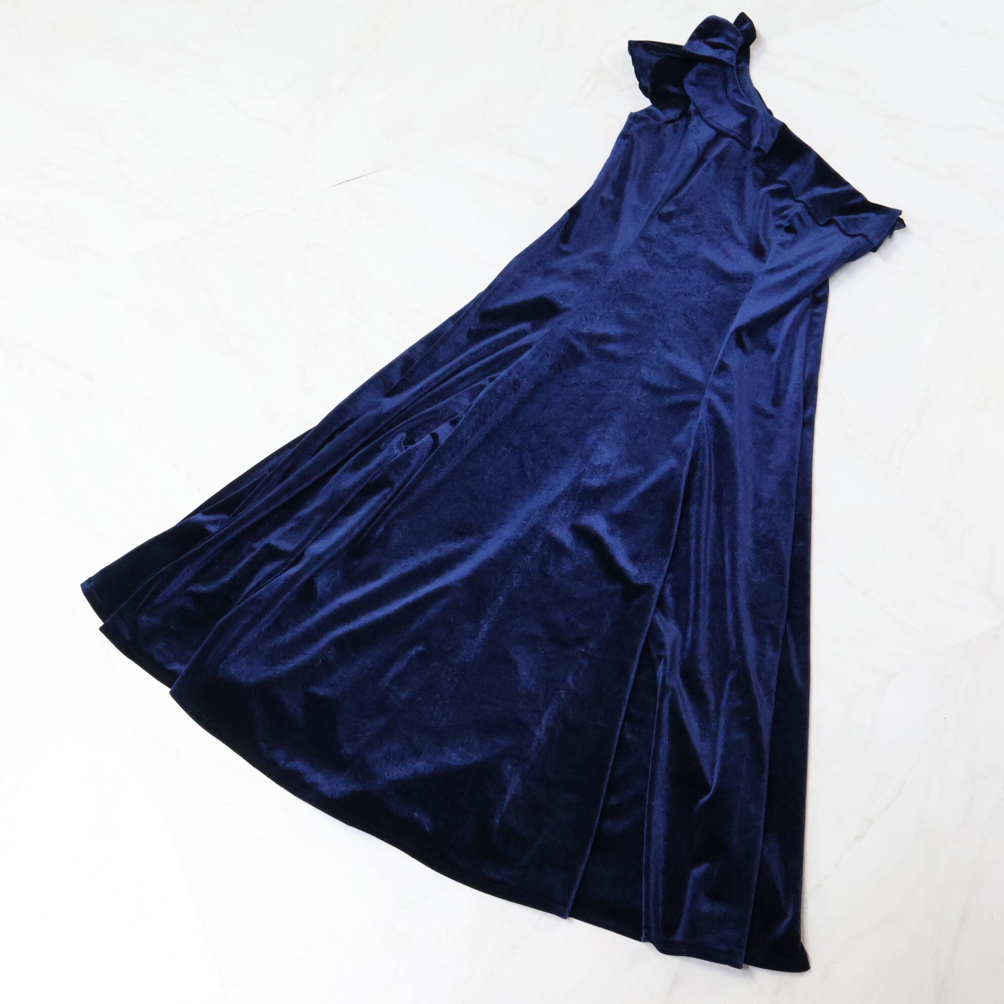 【美品 日本製 フラダンス衣装】ネイビー EKOLU EHIKU エコルエヒク ワンピース ドレス ベロア 無地 紺 光沢 かわいい 高級感