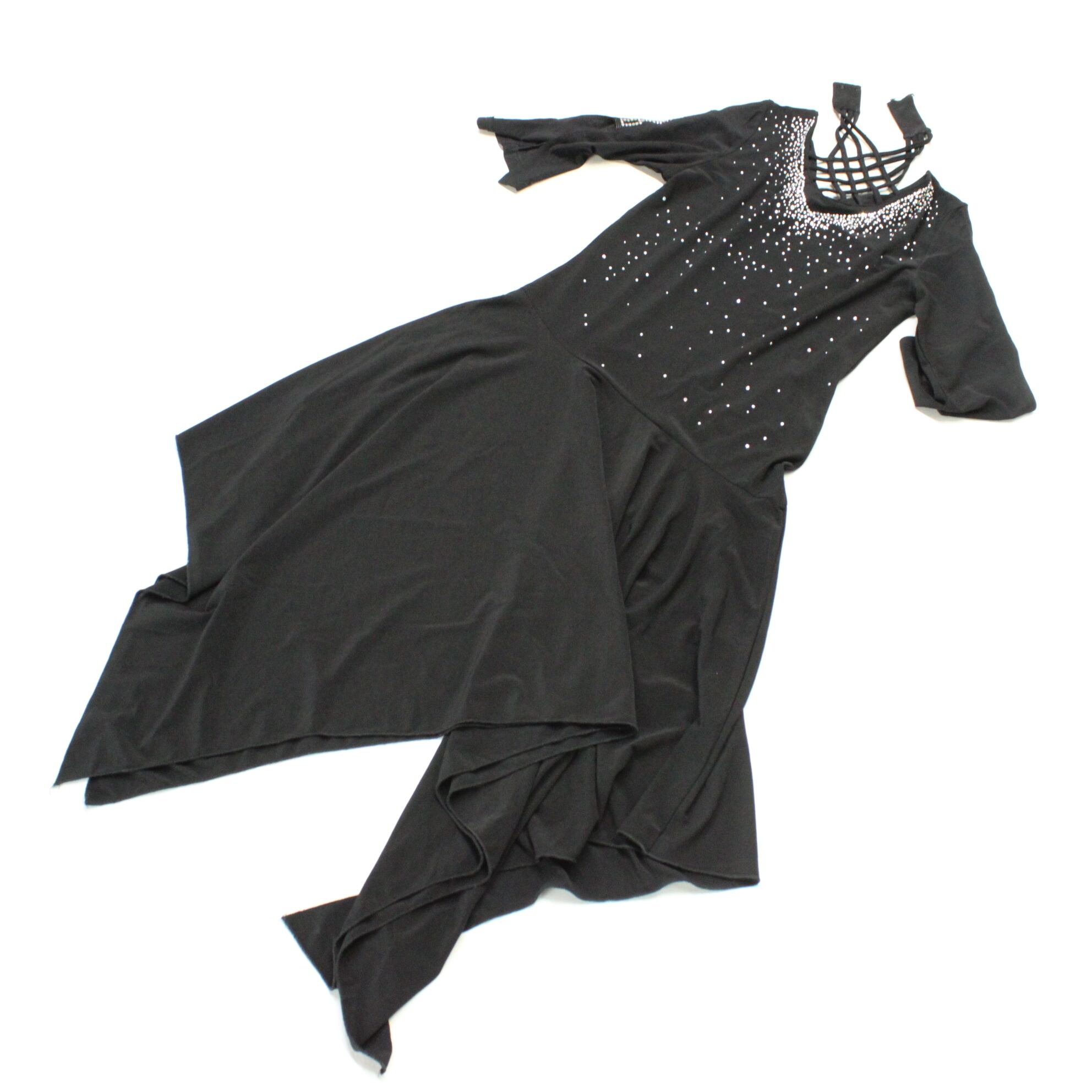 #社交ダンス #ダンスドレス #ブラックドレス #エレガントスタイル #ラインストーン #発表会衣装 #ステージ映え #華やか #上品デザイン #クラシカル #洗練スタイル #優雅 #舞台衣装 #ダンスファッション #大人コーデ #シック #ICHIOKU #ダンスウェア #古着 #中古 #ENUTSU