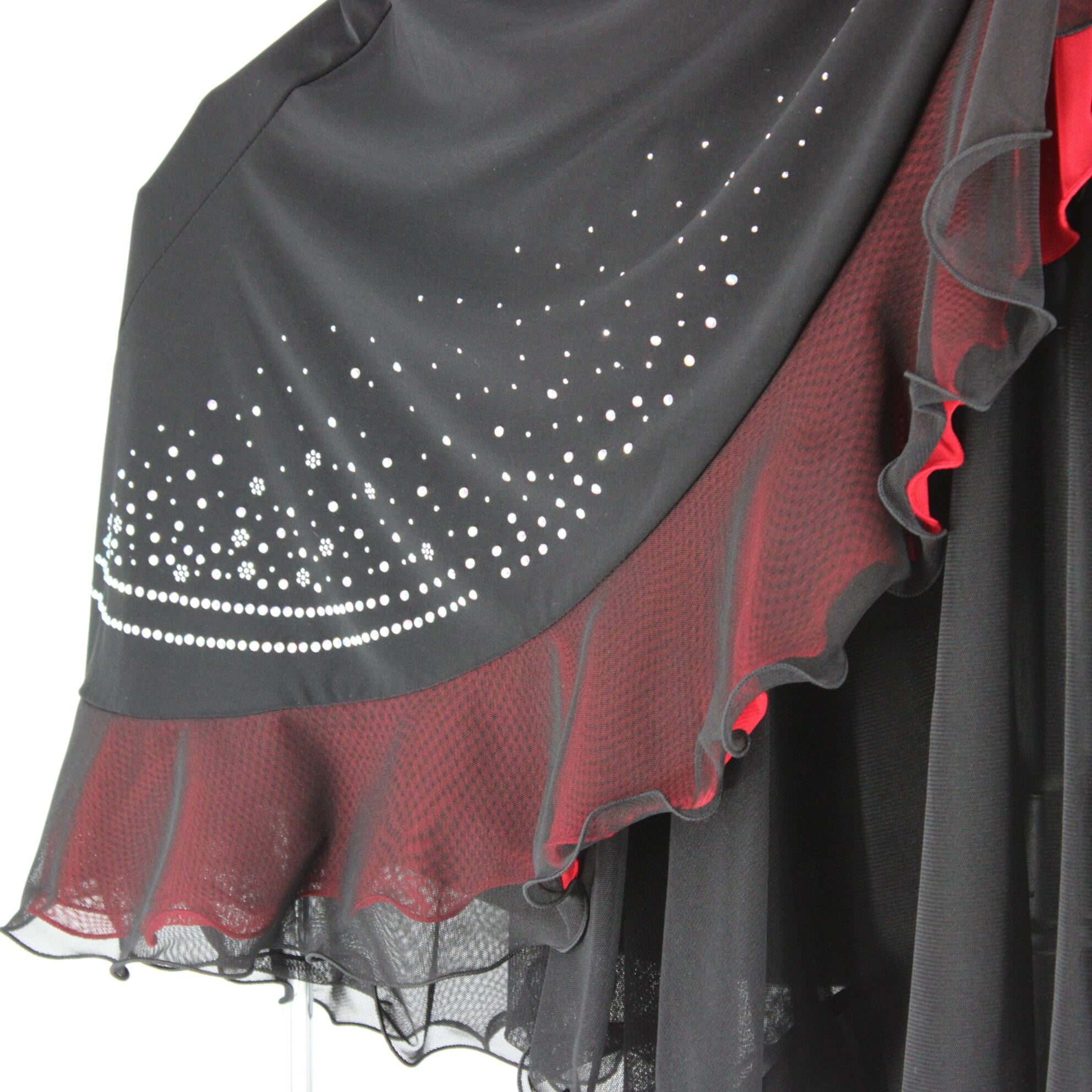【美品 社交ダンス衣装】スカート ACROSS 赤 黒 レッド ブラック ラインストーン 華やか 上品 シック クラシカル フリル 気品