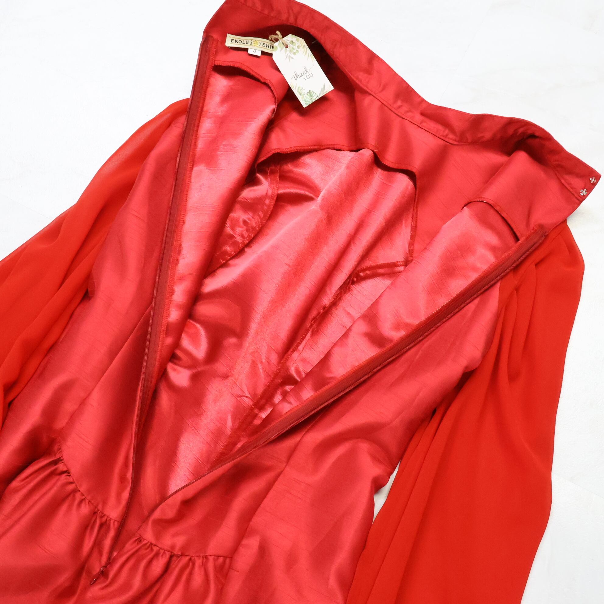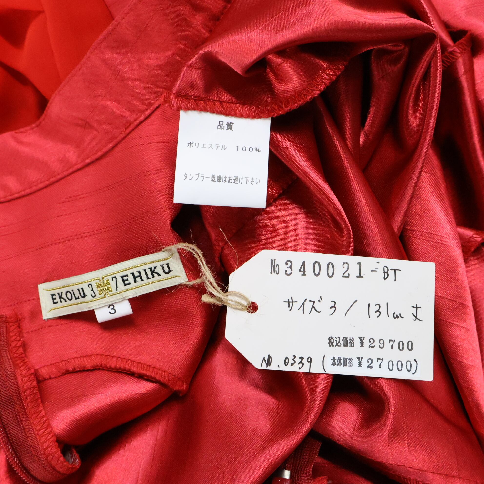 【日本製 フラダンス衣装】レッド EKOLU EHIKU エコルエヒク ワンピース ドレス 赤 長袖 無地 シンプル 透け感 アロハ 可愛い