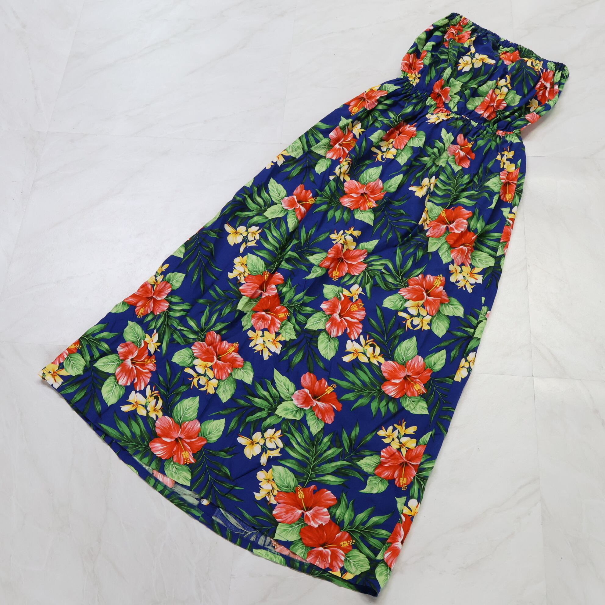 #フラダンス #ワンピースドレス #EKOLU_EHIKU #日本製 #ネイビー #ハイビスカス柄 #タヒチアン #南国スタイル #チューブトップ #エレガント #華やか #アロハファッション #可愛い #フラガール #ダンス衣装 #ダンスコスチューム #ステージ衣装 #古着 #中古 #ENUTSU
