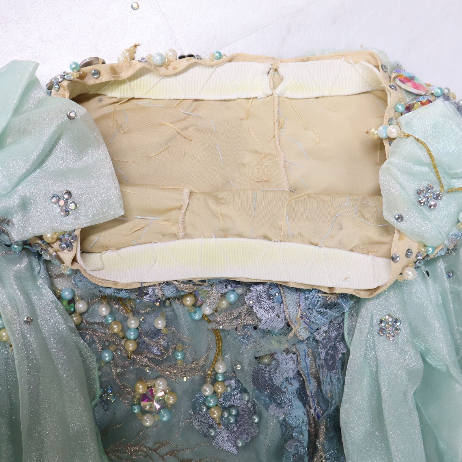 【ベリーダンス用 オリエンタル衣装】アクアブルー ラインストーン ビーズ レース 水色 シルバー フリル 爽やか ふんわり感
