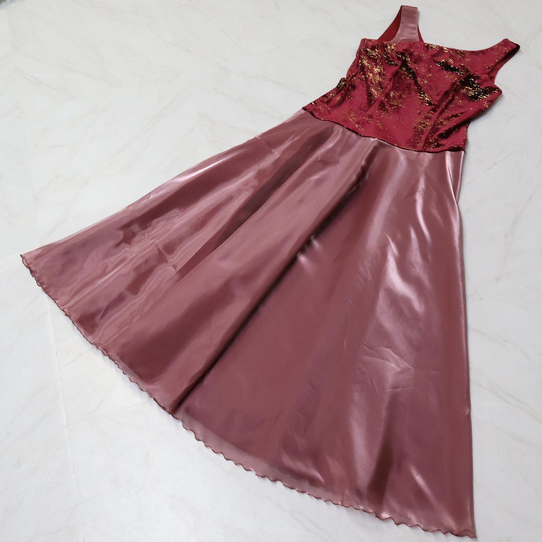【美品 日本製 フラダンス衣装】ワインレッド Paondor パンドール ワンピース ドレス 赤 金 ゴールド 光沢 キラキラ かわいい