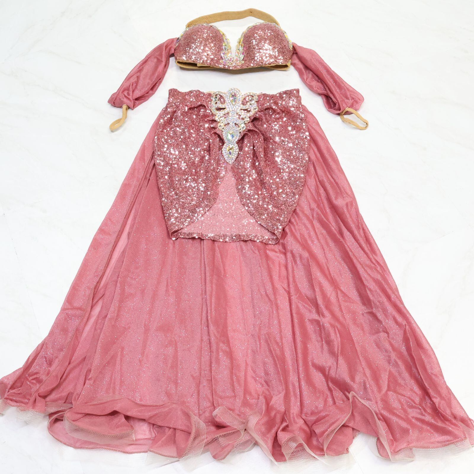 #ベリーダンス #ベリーダンス衣装 #オリエンタル衣装 #ダンス衣装 #発表会衣装 #ステージ衣装 #ローズピンク #ラインストーン #スパンコール #煌びやか #華やか衣装 #スリットスカート #ウエストゴム #美シルエット #エレガント #フロア映え #伸縮性あり #ダンスファッション #豪華セット #おしゃれデザイン #ENUTSU