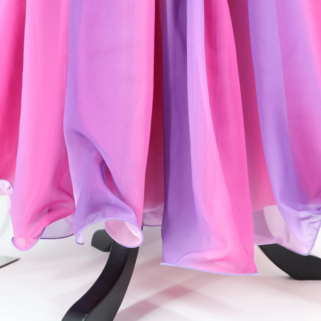 【美品 フラダンス衣装】ピンク Paondor パンドール ワンピース ドレス 紫 パープル レース 華やか 鮮やか ふんわり かわいい