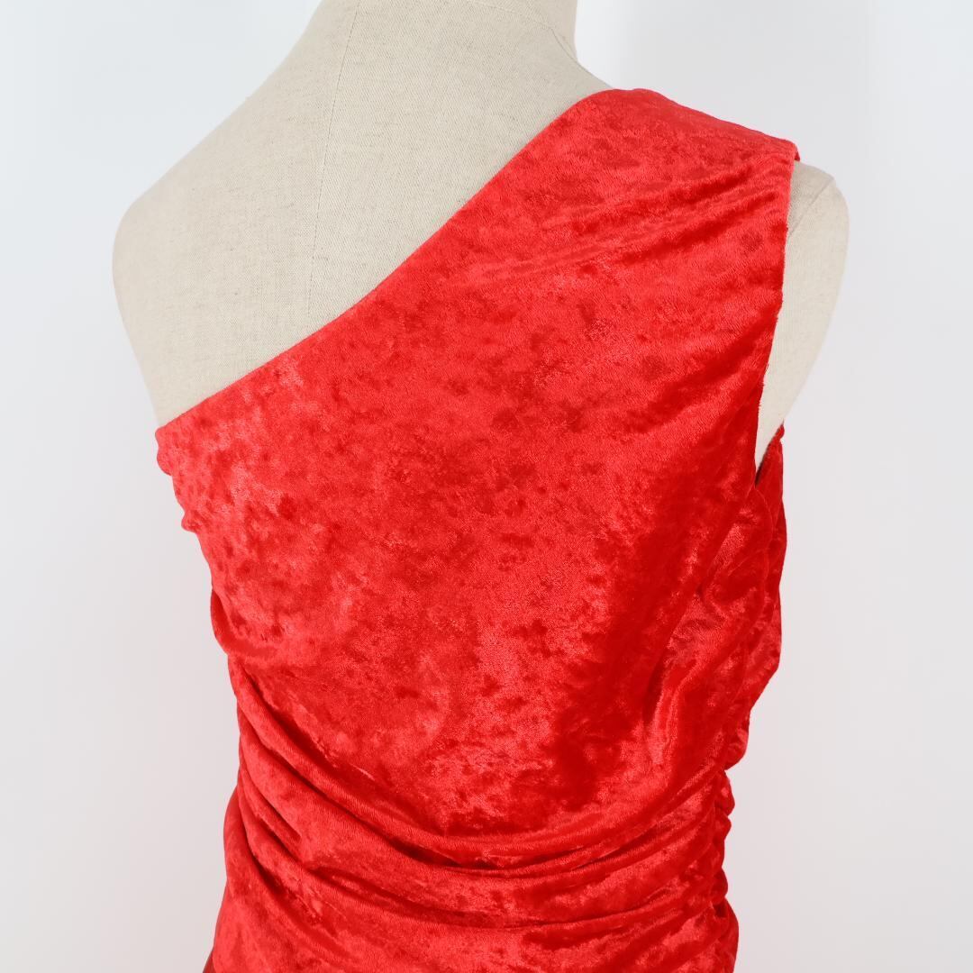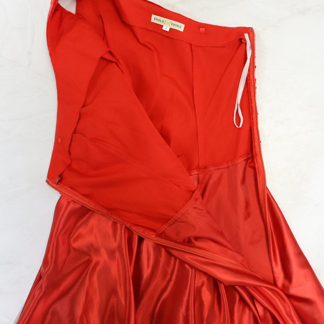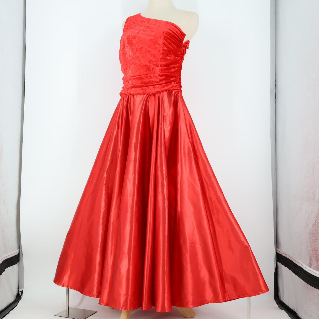 【日本製 フラダンス衣装】レッド EKOLU EHIKU エコルエヒク ワンピース ドレス 赤 ベロア サテン 光沢 ワンショルダー 可愛い
