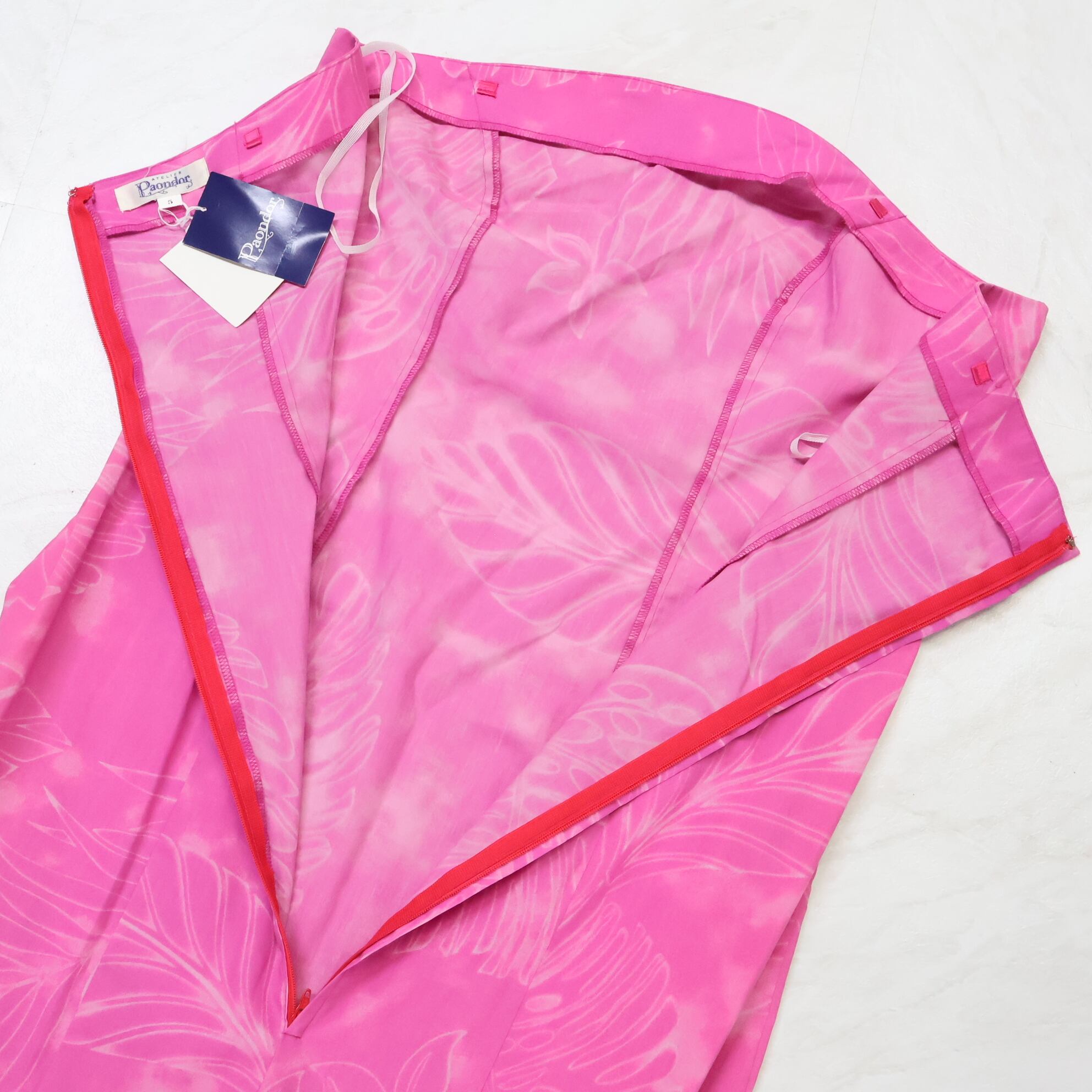 【日本製 フラダンス衣装】ピンク Paondor パンドール ワンピース ドレス モンステラ柄 花柄 華やか フリル アロハ かわいい