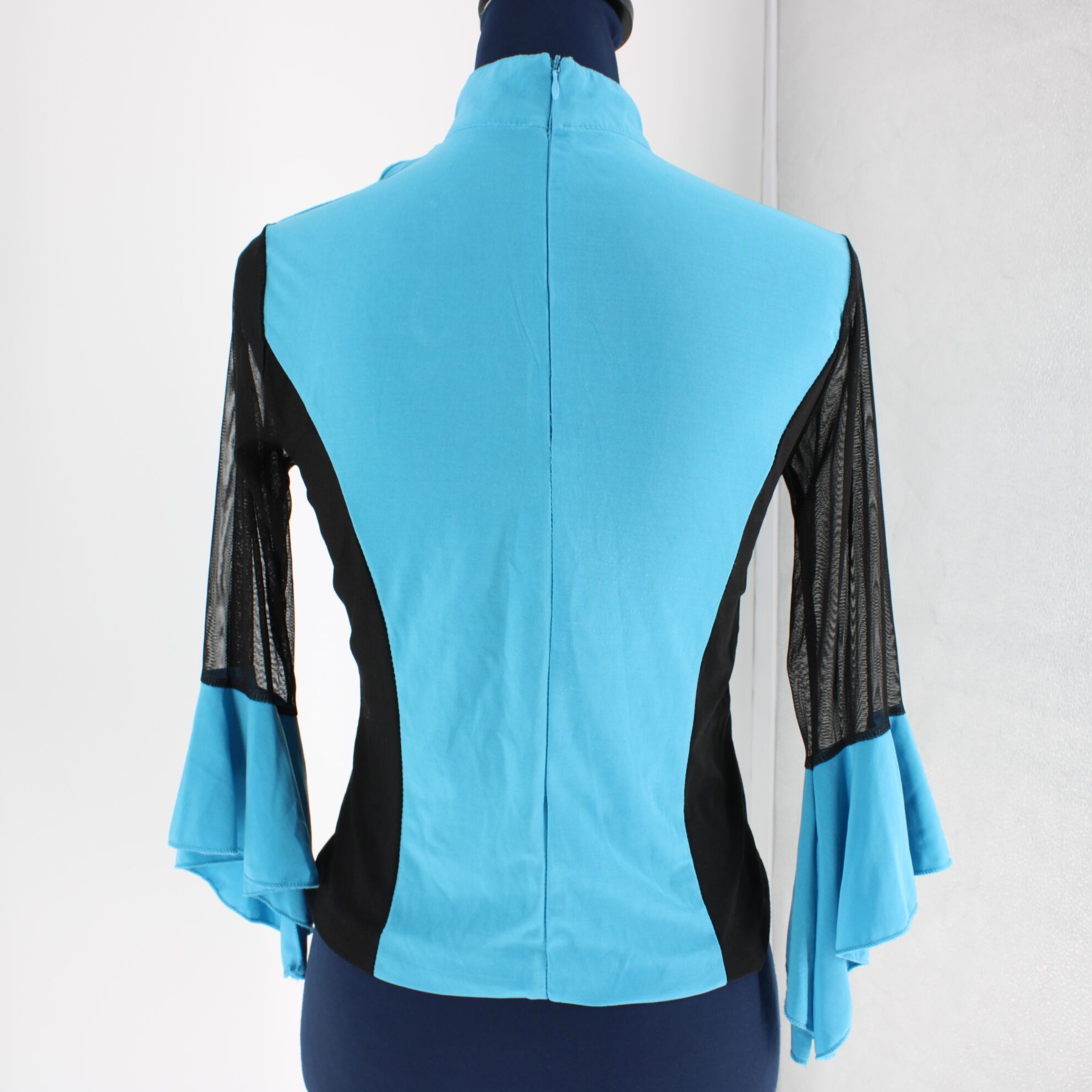 【美品 社交ダンス衣装】トップス leirena レイリーナ 黒 水色 ブラック ライトブルー バイカラー かわいい 鮮やか 上品 清楚