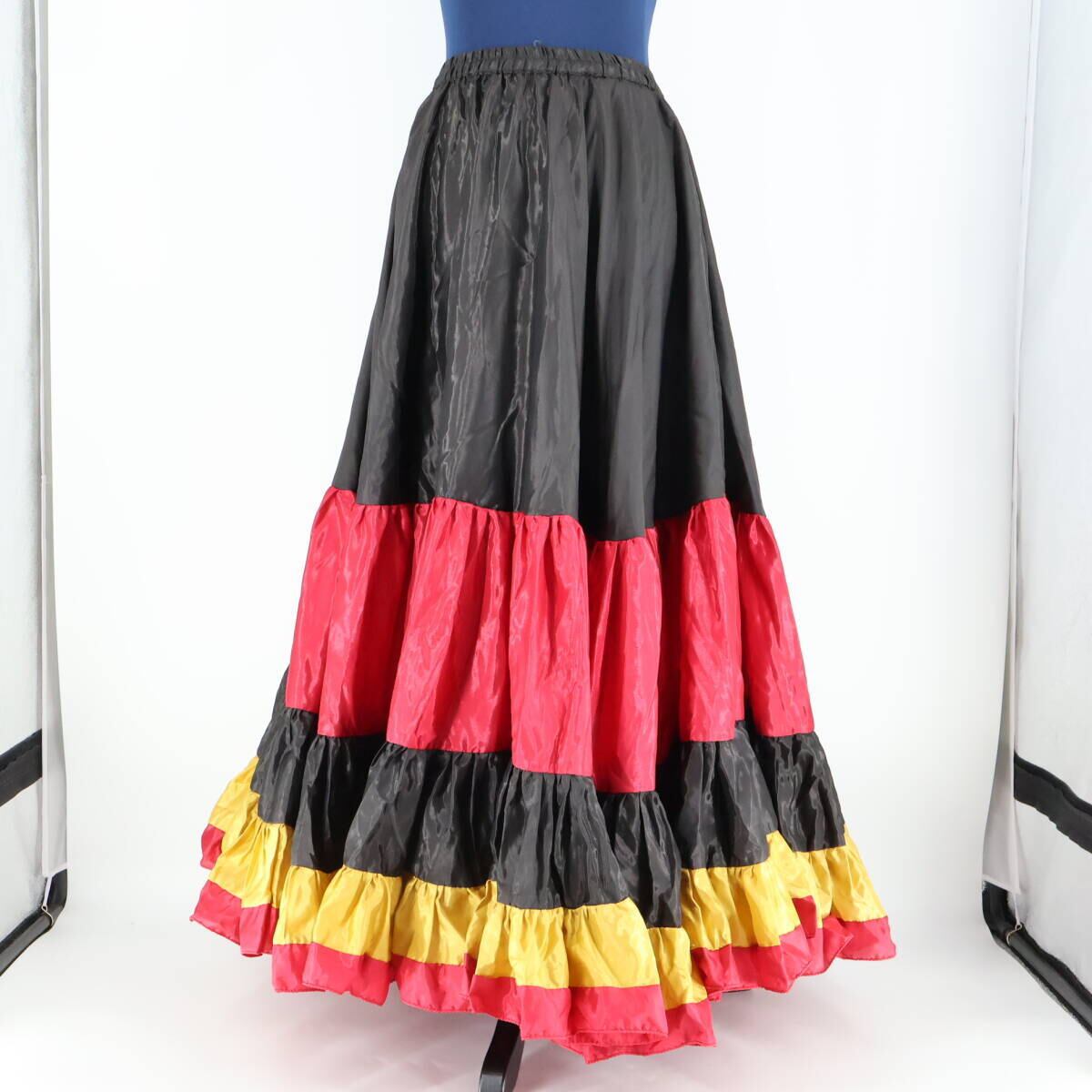 【インド製 ベリーダンス用衣装】ブラック×レッド×イエロー ジプシースカート ボリューム 黒 赤 黄 フリル 鮮やか ボーダー