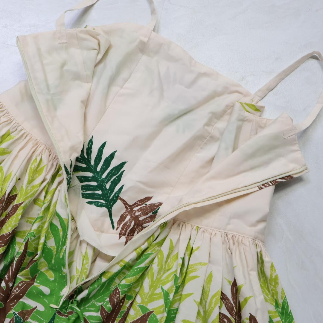 【フラダンス衣装】ホワイト ワンピース ドレス モンステラ柄 白 緑 グリーン 茶 黄緑 キャミソール 袖なし アロハ かわいい