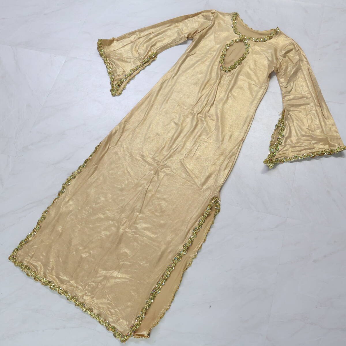 【ベリーダンス用衣装】ゴールド サイーディドレス ガラベーヤ ワンピース ドレス スパンコールラメ 光沢 艶 ストレッチ素材