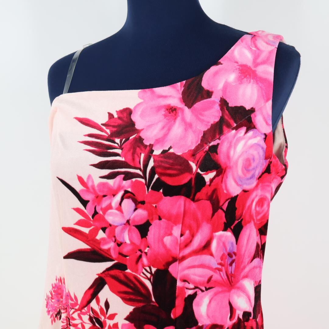 【美品 フラダンス衣装】ピンク ALOHA STANDARDS アロハスタンダード ワンピース ドレス 花 鮮やか ノースリーブ ベロア 赤