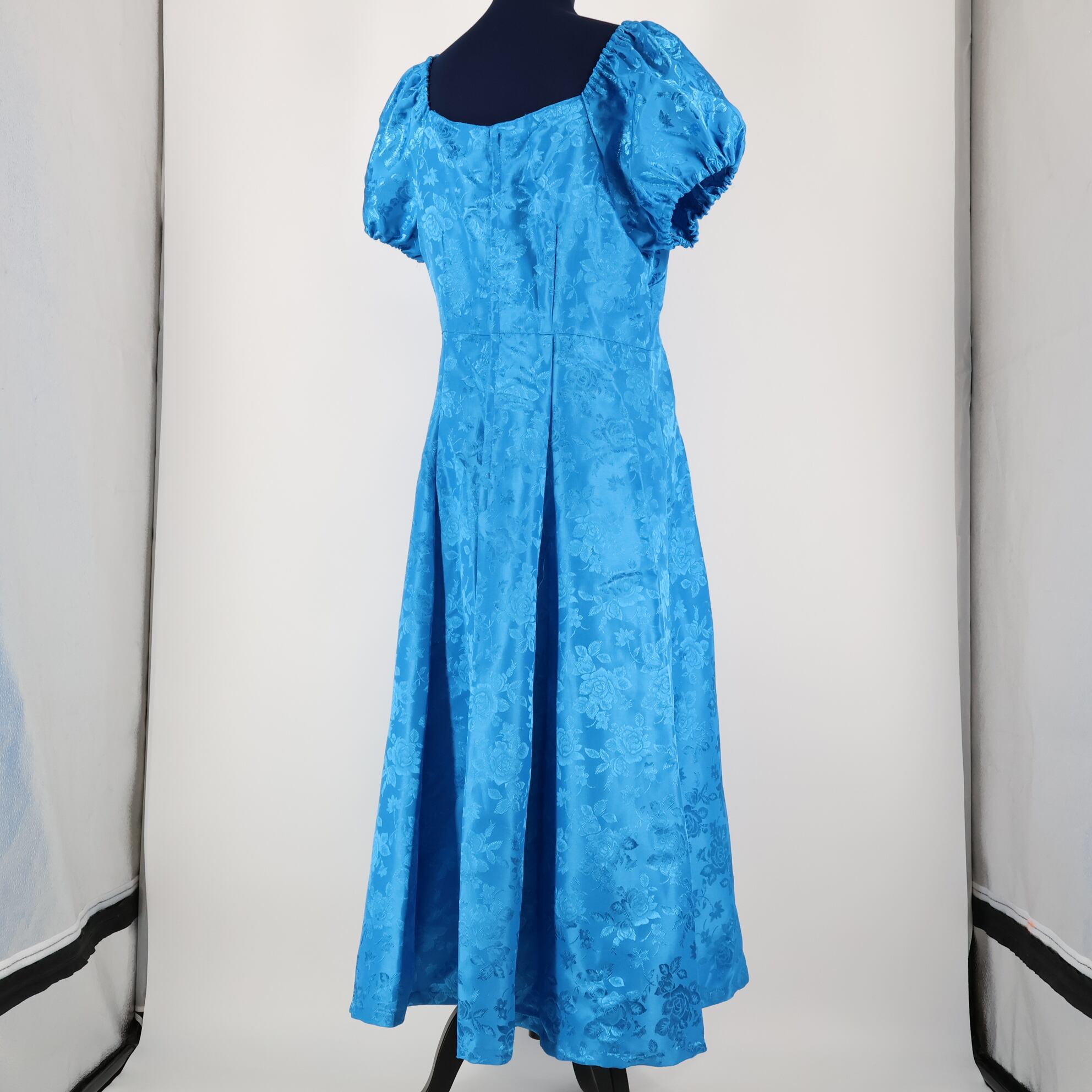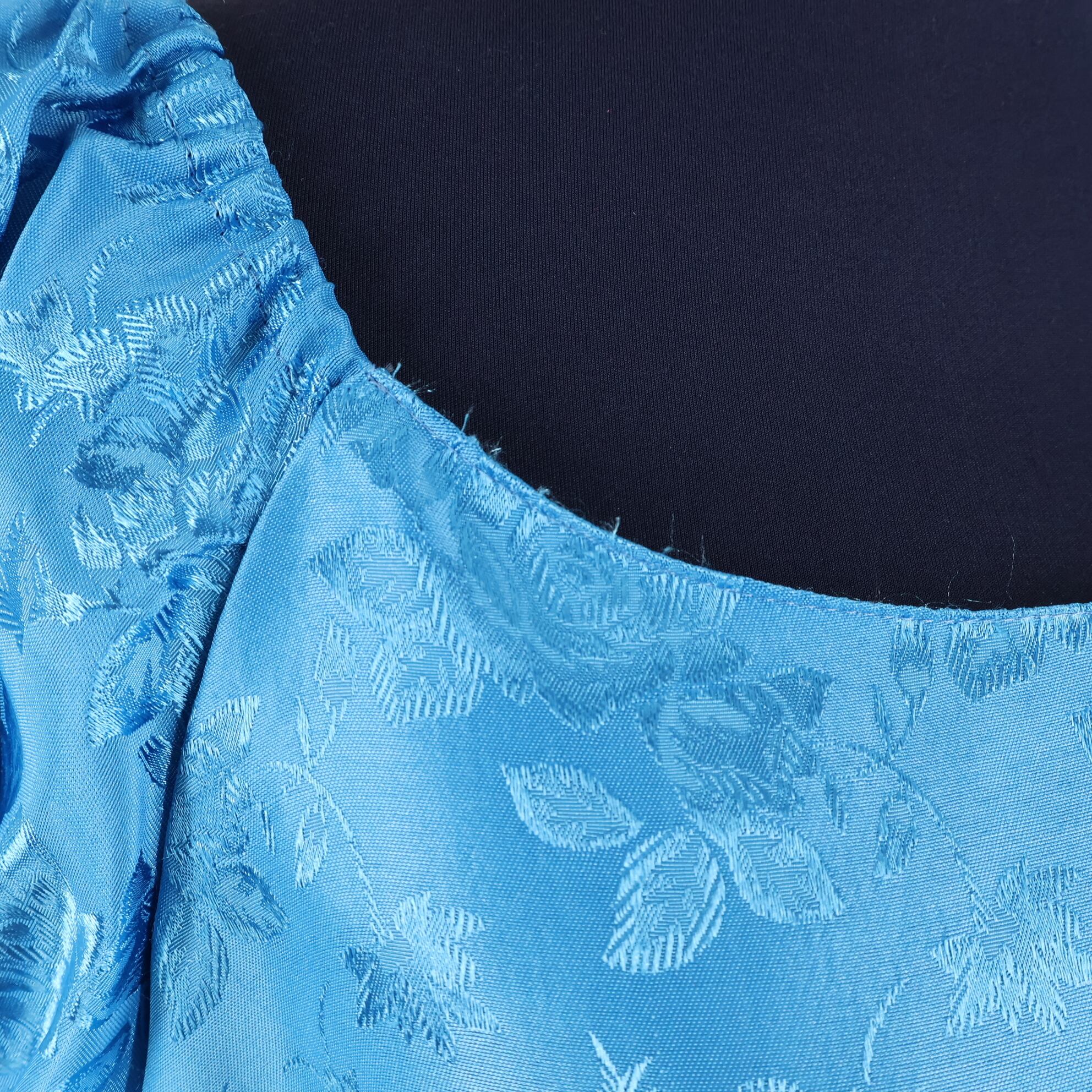 【フラダンス衣装】スカイブルー ワンピース ドレス 水色 刺繍 花柄 爽やか 半袖 明るい 華やか 光沢 ハワイアン かわいい 青