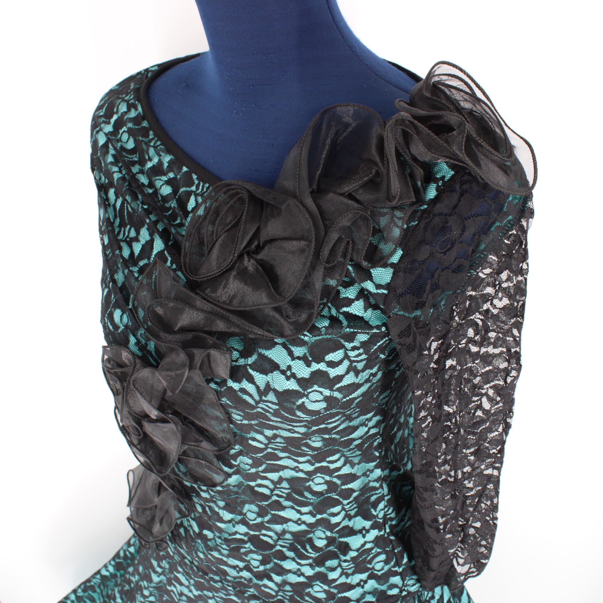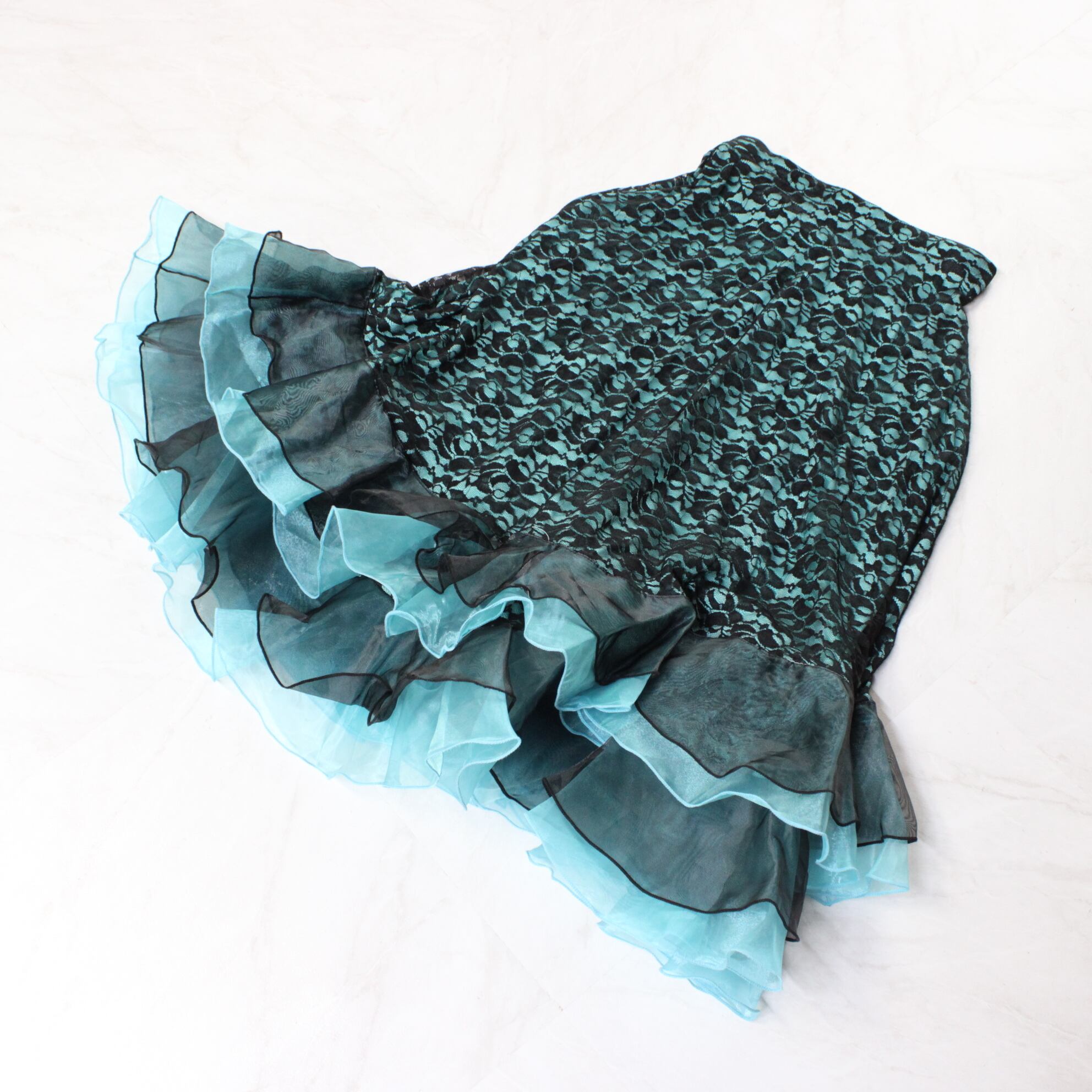 【美品 社交ダンス衣装】上下セット トップス スカート leirena レイリーナ 水色 ライトブルー 黒 ブラック レース フリル