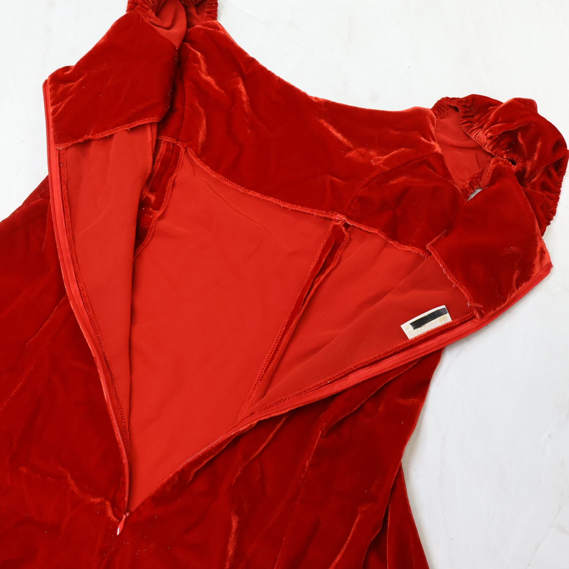 #フラダンス #ワンピースドレス #レッド #ベロア #光沢 #キラキラ #無地 #シンプル #ハワイアン #エレガントスタイル #フラガール #リゾートコーデ #アロハファッション #南国スタイル #華やか #ダンス衣装 #ダンスコスチューム #ステージ衣装 #古着 #中古 #ENUTSU
