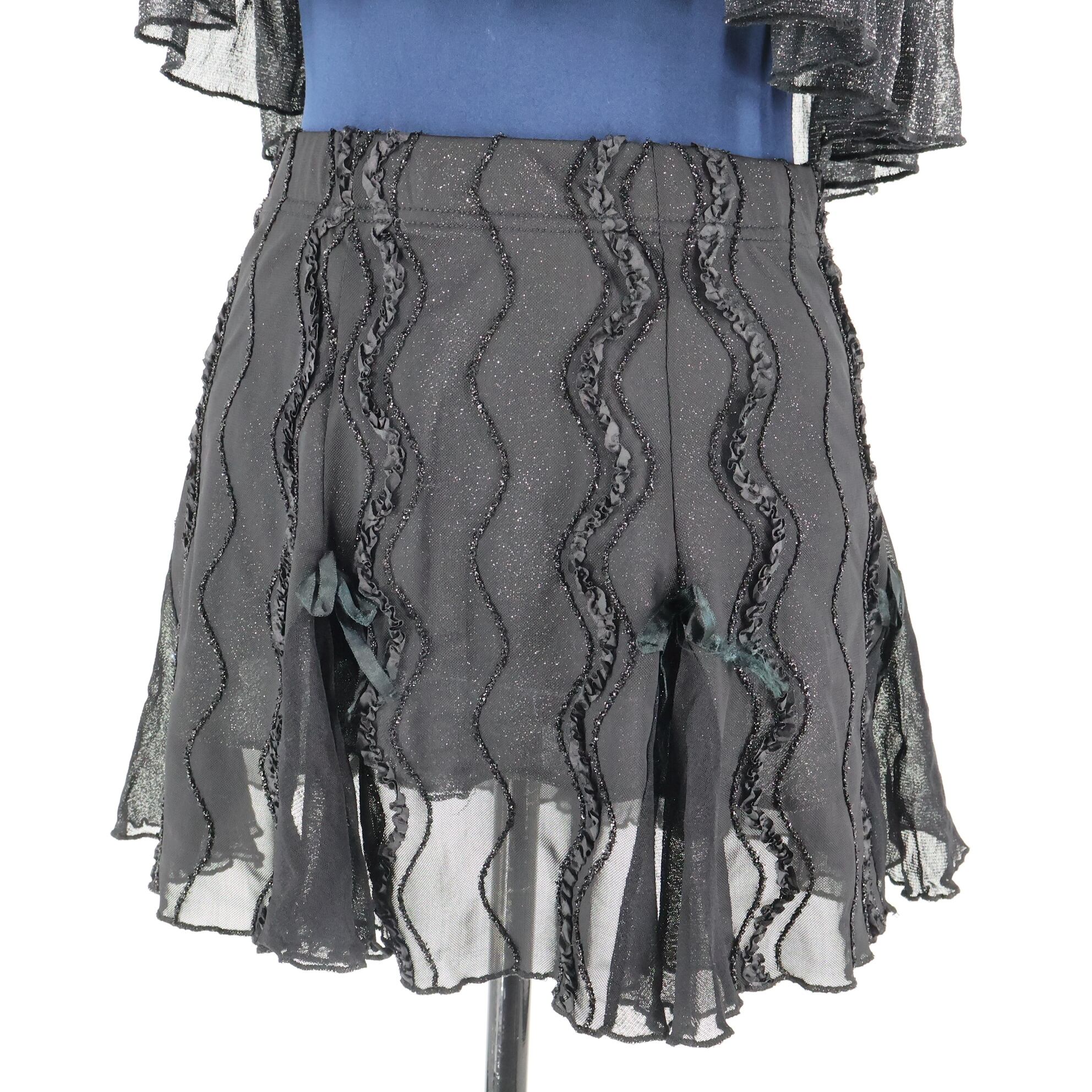 #ベリーダンス衣装 #レッスン着 #ブラック #ゴールド #ラメ #レース生地 #リボンデザイン #フリル #ミニスカート #動きやすい #ダンスウェア #シンプルスタイル #エレガント #ベリーダンスファッション #大人可愛い #ダンス衣装 #ダンスコスチューム #ステージ衣装 #古着 #中古 #ENUTSU