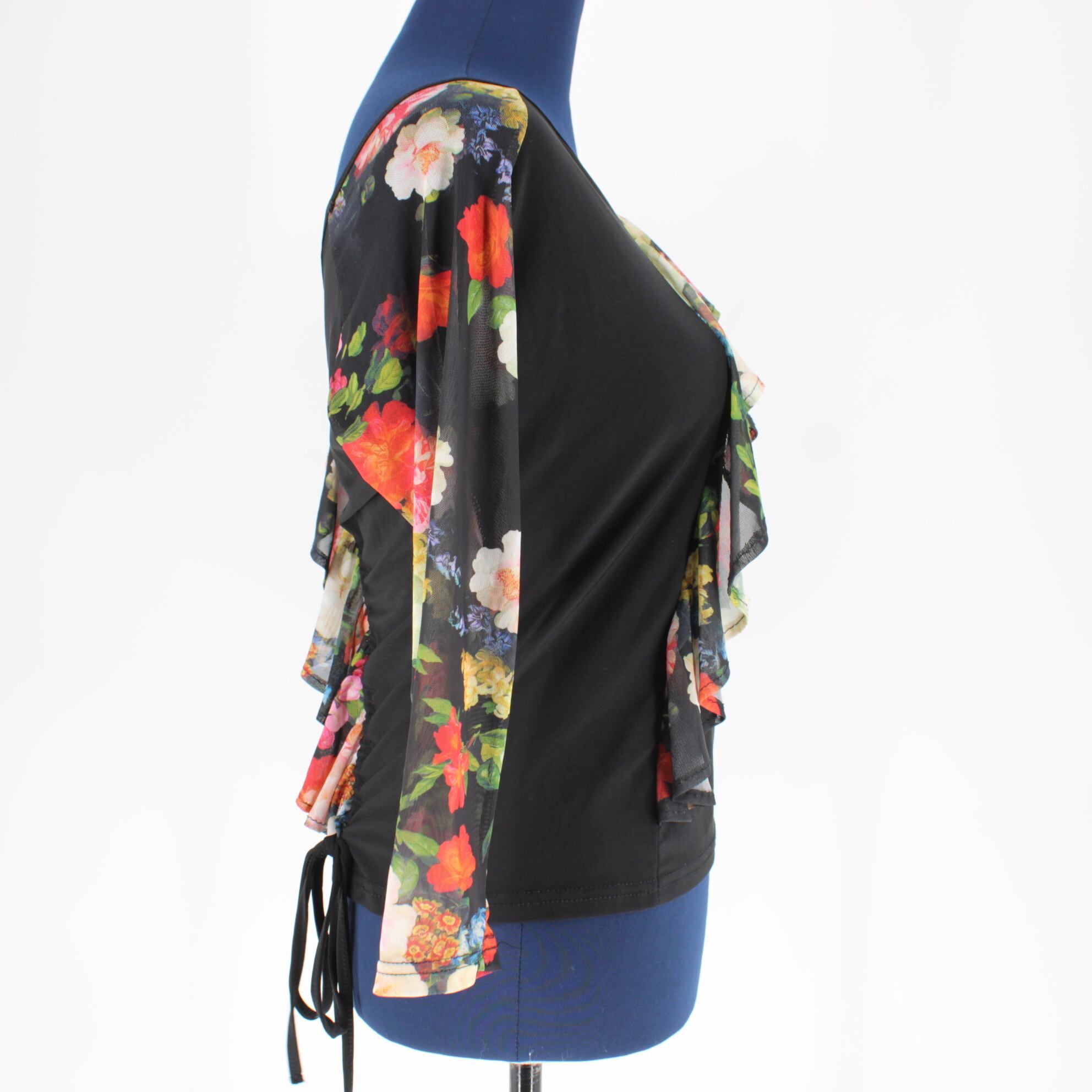 【美品 社交ダンス衣装】トップス 黒 ブラック 花柄 ICHIOKU イチオク シック クラシカル かわいい 可愛い 華やか 上品 清楚