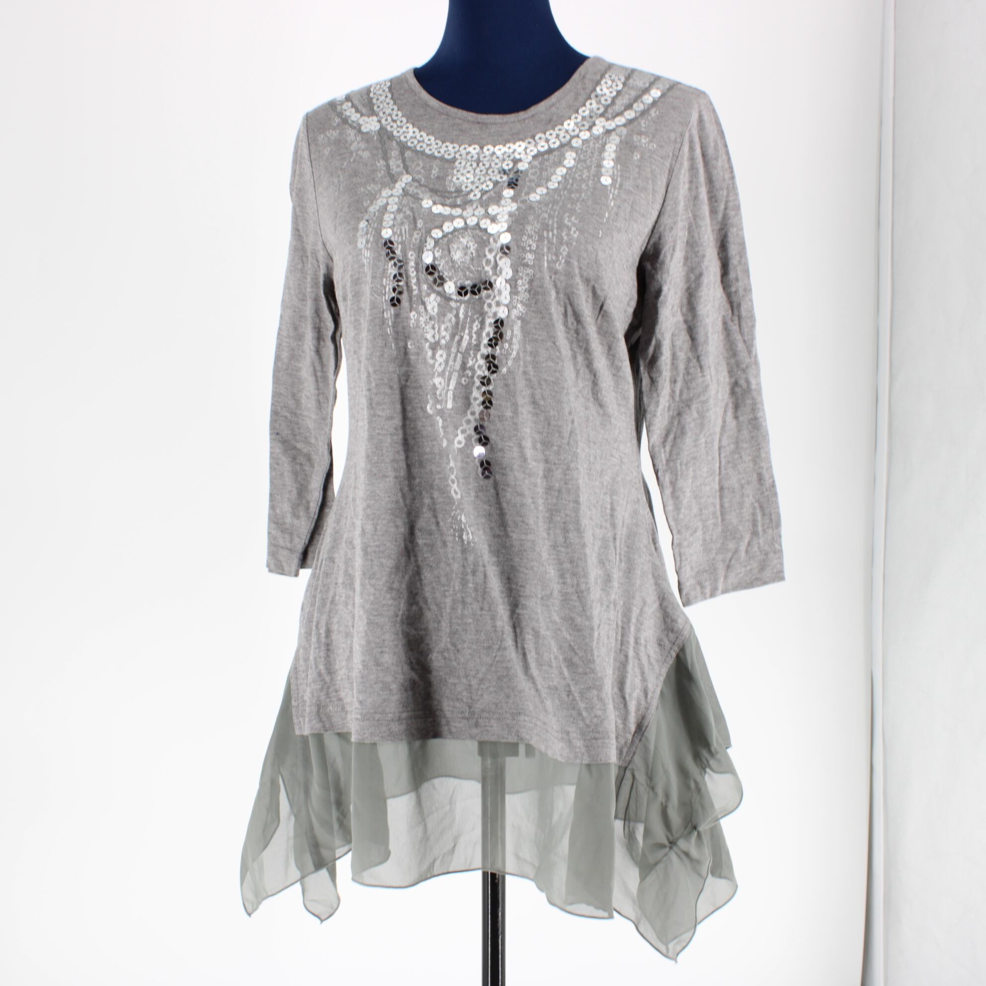 【美品 日本製社交ダンス衣装】トップス Chamois グレー ライトグレー スパンコール かわいい 可愛い 上品 清楚 気品 爽やか