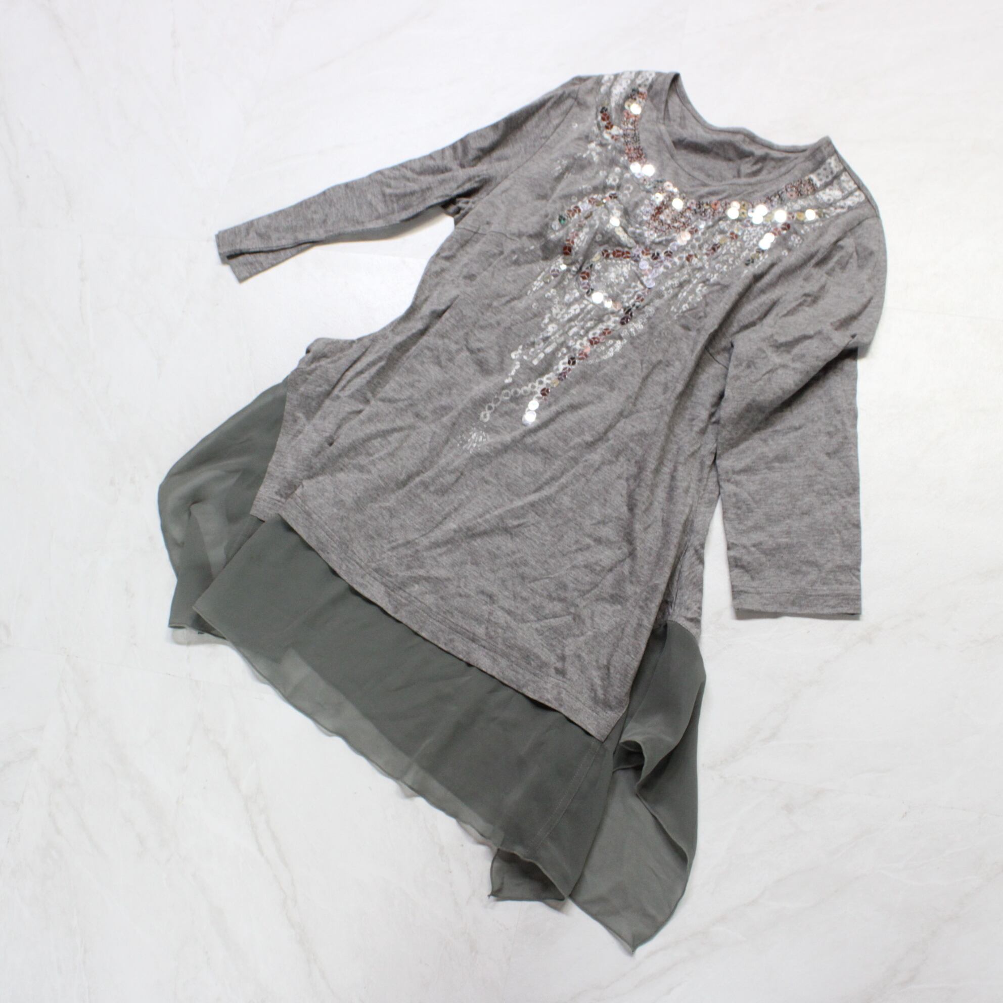 #社交ダンス #社交ダンス衣装 #ダンストップス #ライトグレー #スパンコール #エレガントスタイル #上品コーデ #ステージ衣装 #ダンスファッション #舞台衣装 #Chamois #日本製 #伸縮性あり #ダンスウェア #発表会コーデ #シンプルトップス #古着 #中古 #ENUTSU