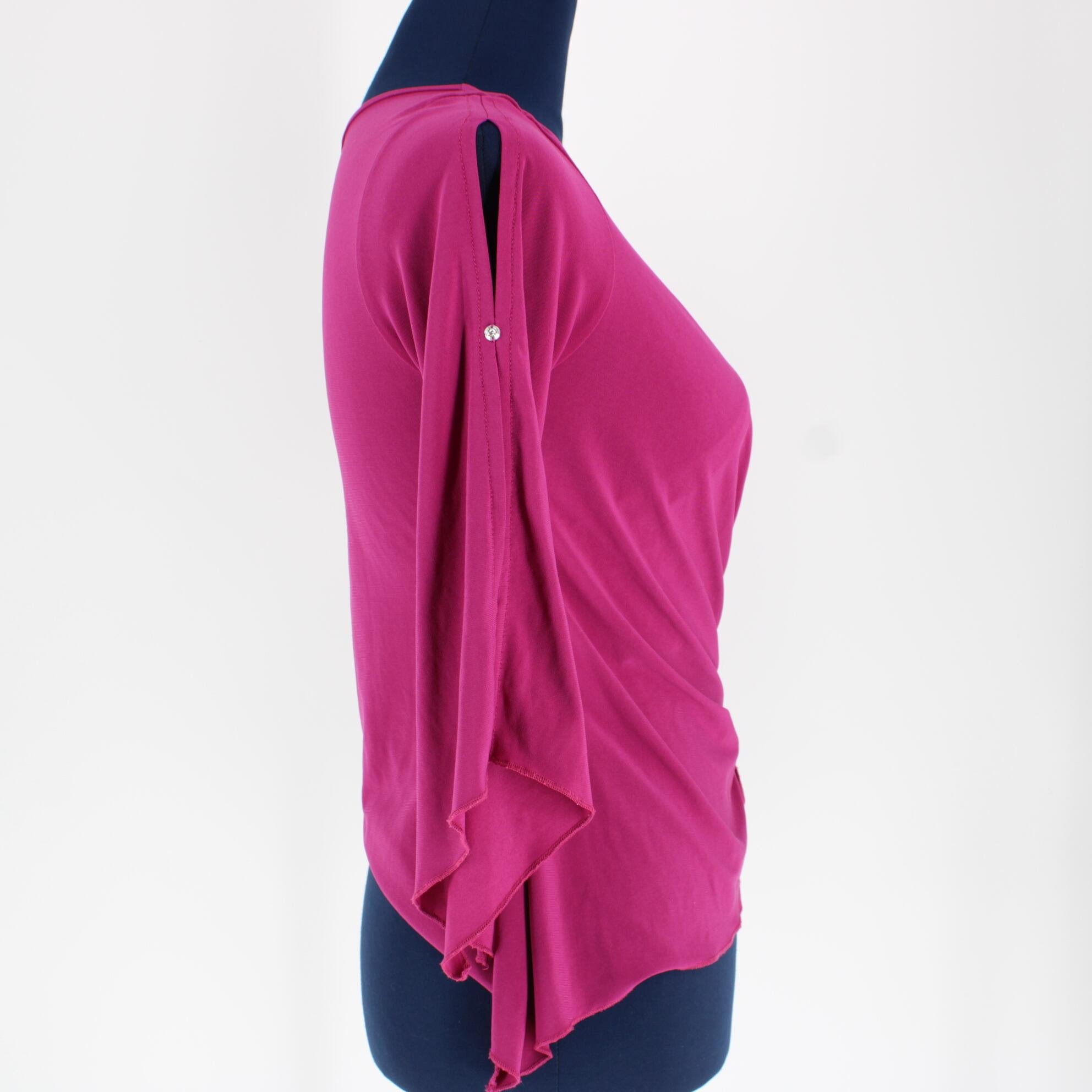 【美品 社交ダンス衣装】トップス スパンコール ビーズ 紫 パープル 華やか かわいい 可愛い 上品 気品 清楚 アシンメトリー