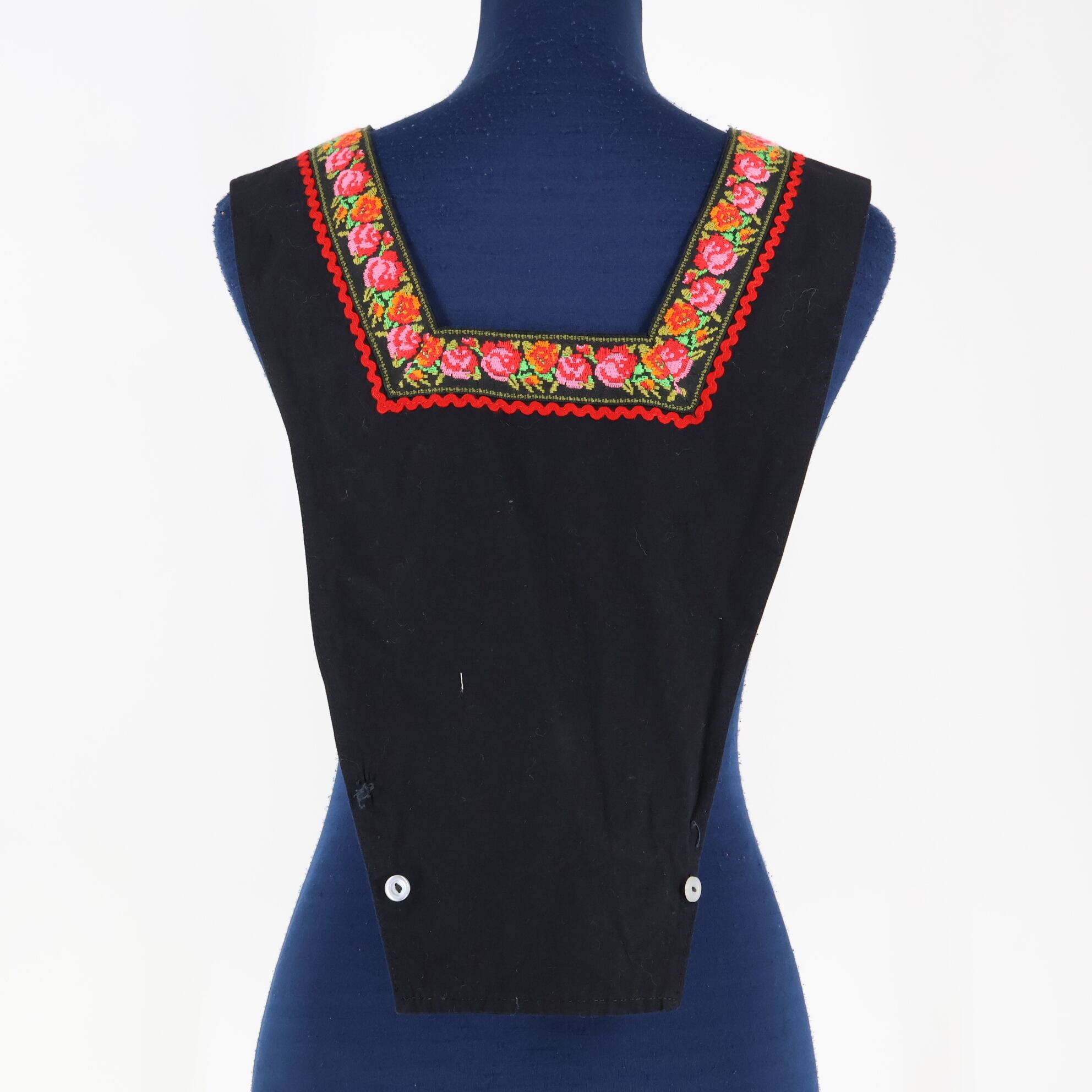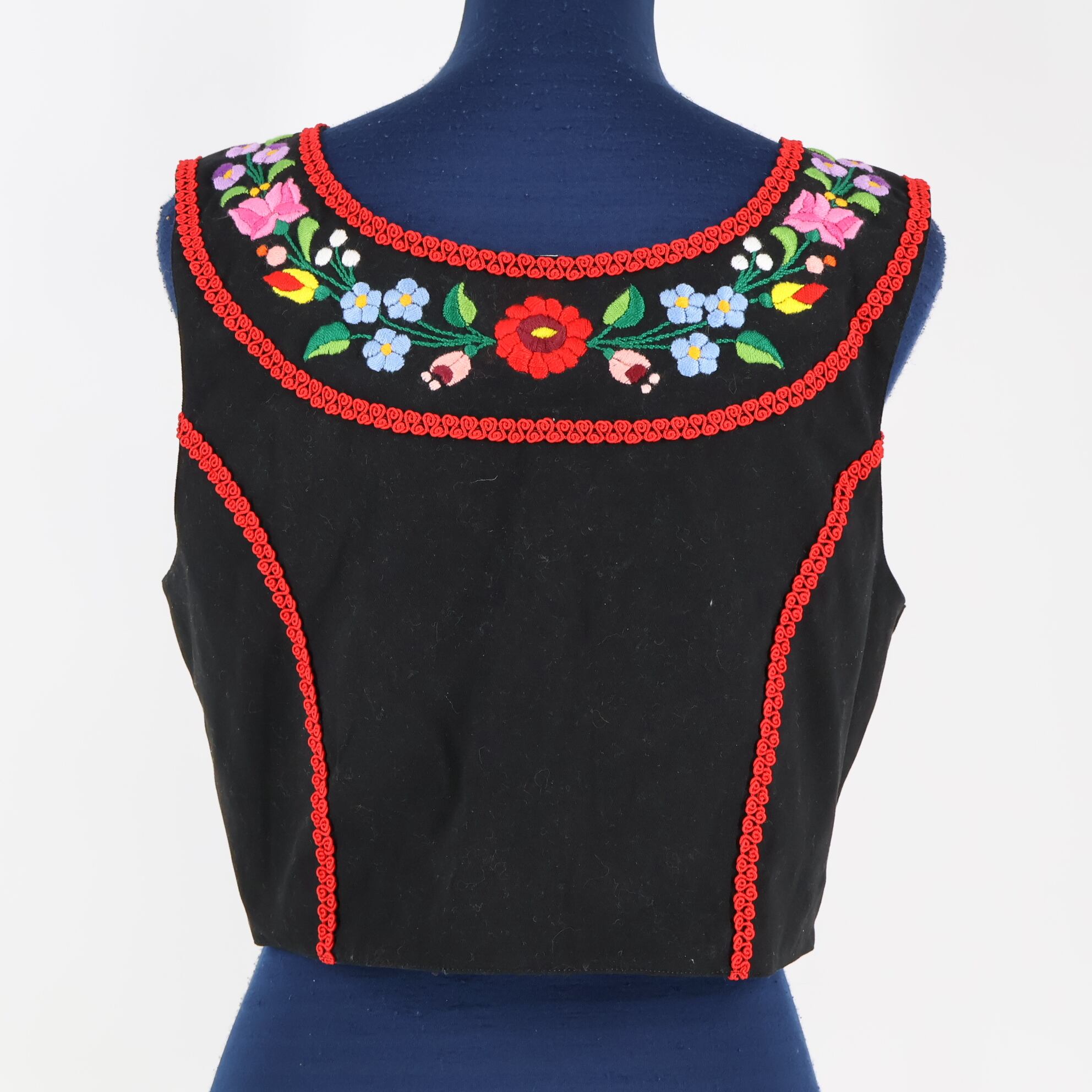 【フォークダンス衣装 2点セット】ブラック トップス ベスト まとめ売り 黒 刺繍 花柄 赤 緑 水色 華やか チロリアン ボタン