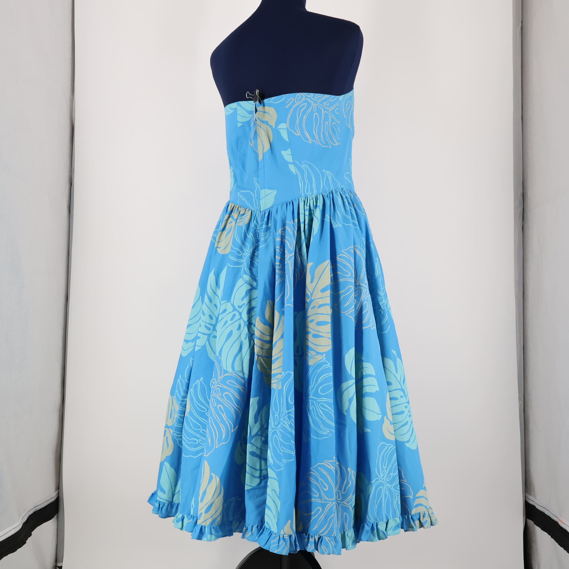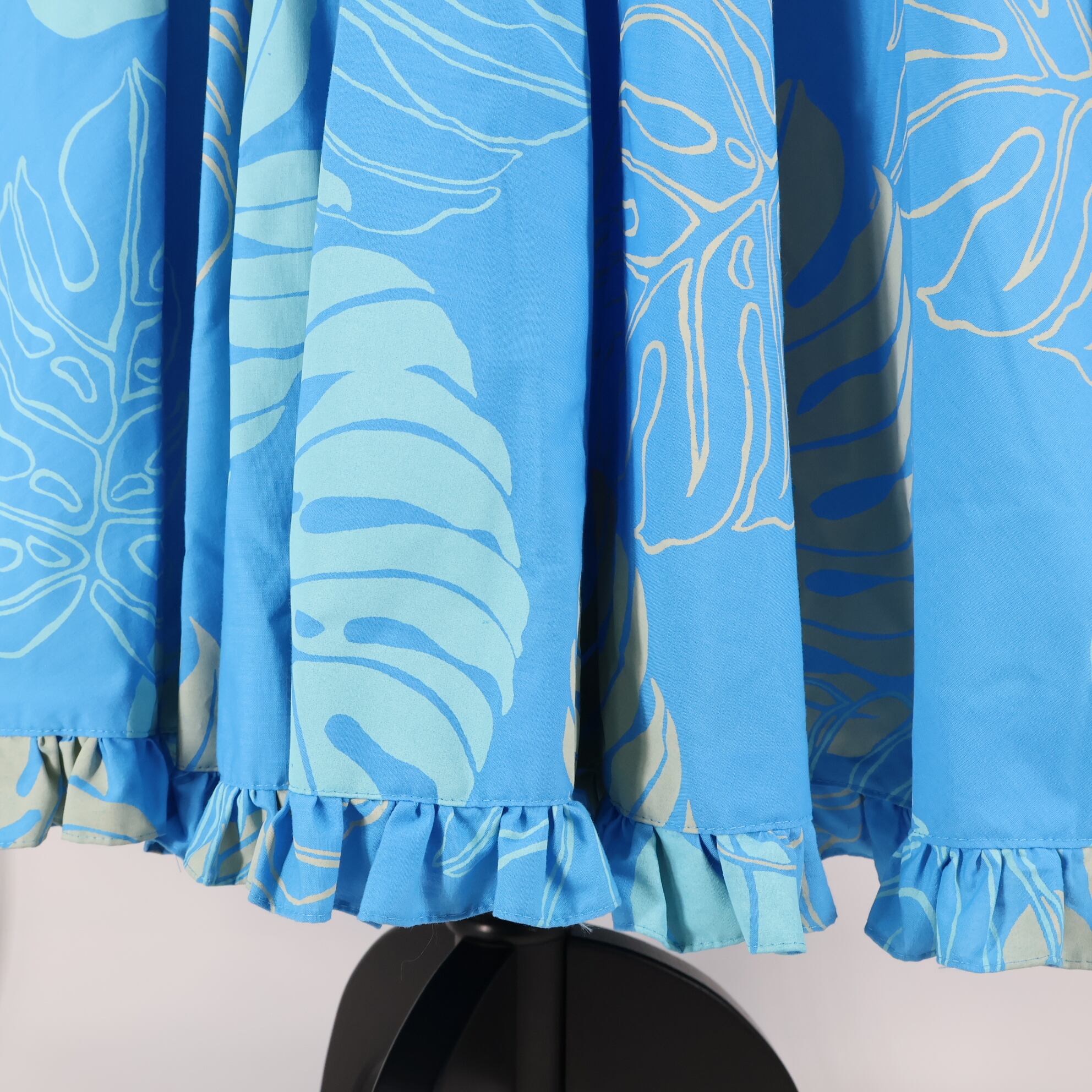 【フラダンス衣装】スカイブルー Hula Dream ワンピース ドレス 水色 モンステラ柄 チューブトップ 爽やか フリル かわいい