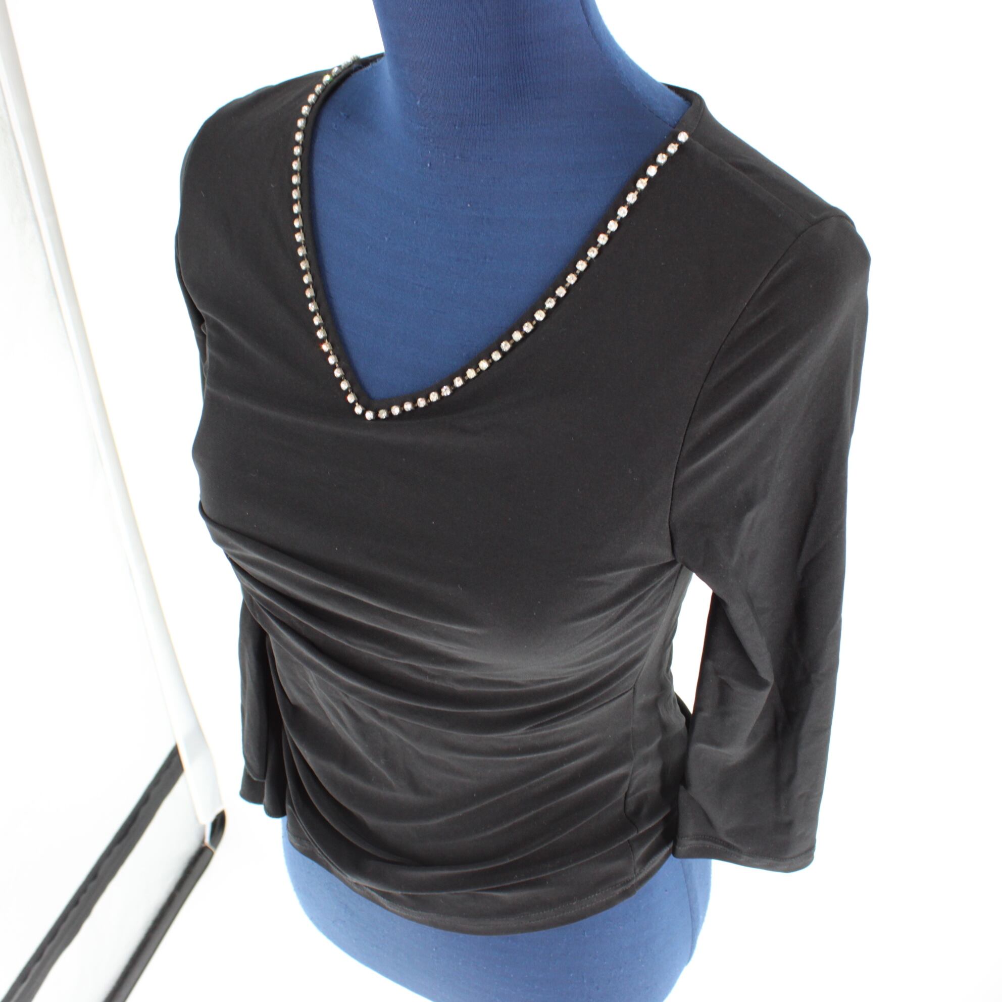 【美品 社交ダンス衣装】トップス leirena レイリーナ 黒 ブラック ラインストーン 無地 シンプル かわいい 可愛い 上品 気品