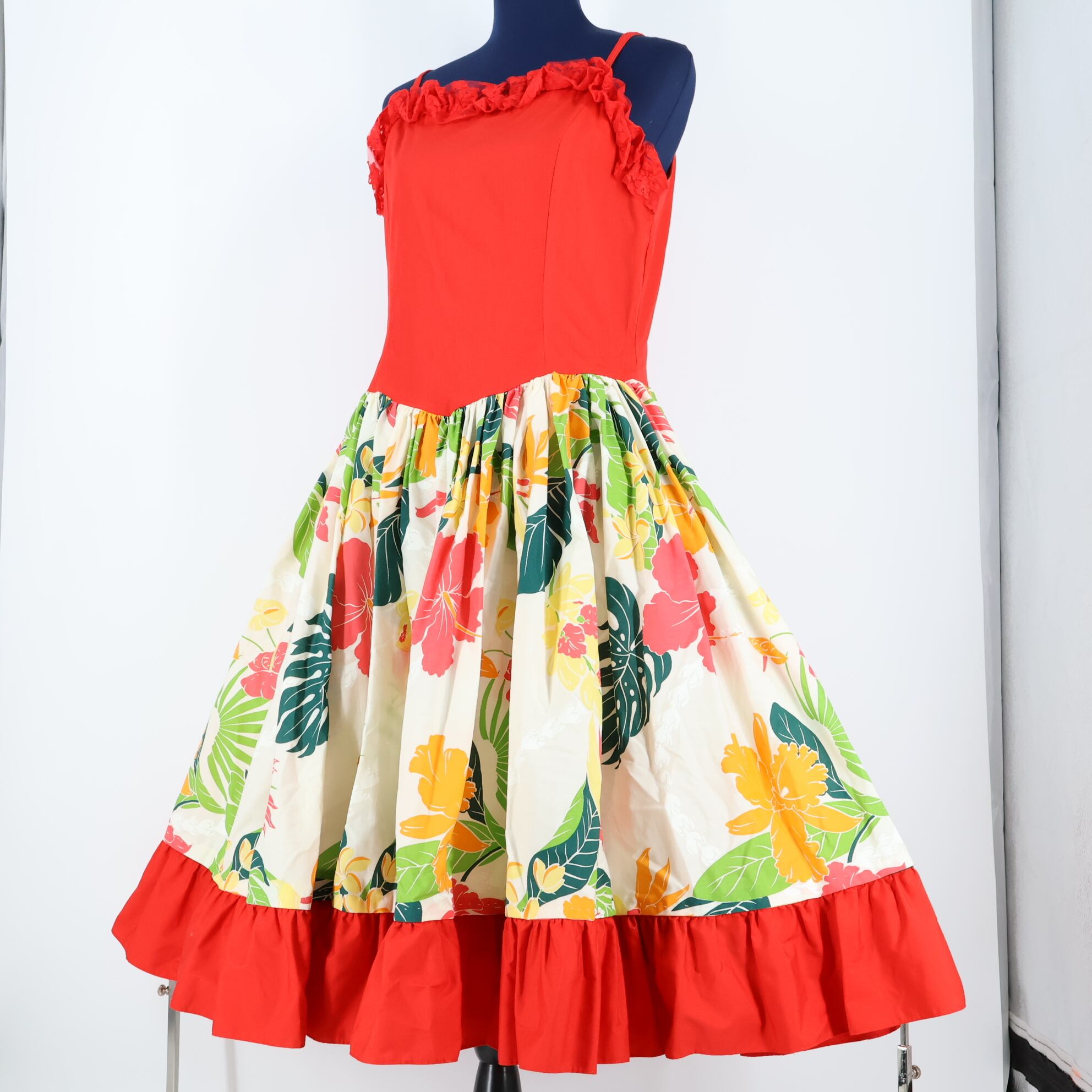 #フラダンス #ワンピースドレス #ハイビスカス柄 #モンステラ柄 #レッド #ホワイト #キャミソール #フリル #エレガントスタイル #ハワイアン #アロハ #リゾートコーデ #南国スタイル #フラガール #タヒチアン #華やか #かわいい #ダンス衣装 #ダンスコスチューム #ステージ衣装 #古着 #中古 #ENUTSU