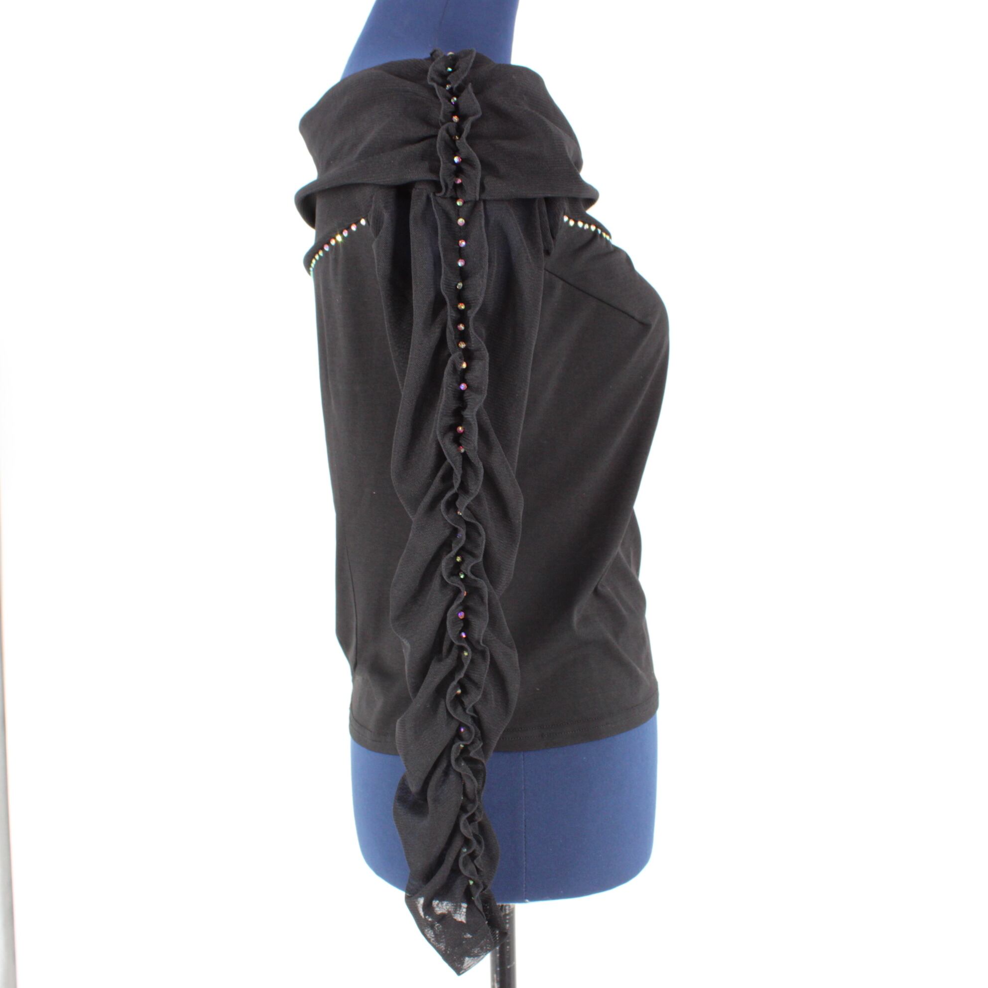 【美品 社交ダンス衣装】トップス create-sun クリエイトサン Lサイズ 黒 ブラック ラインストーン 透け感 レッスン着 上品