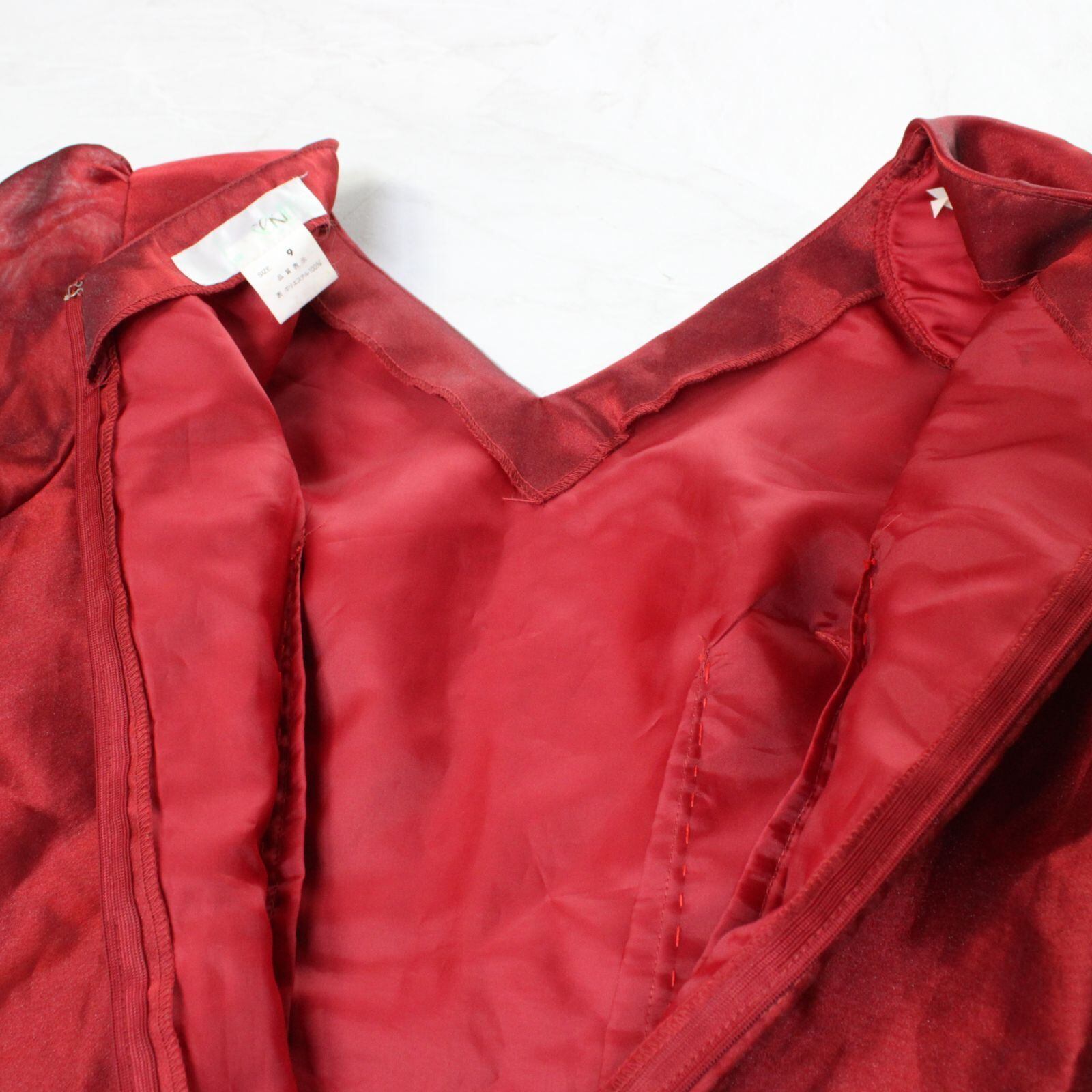 【美品 日本製社交ダンス衣装】上下セット トップス スカート SEKINE セキネ 赤 レッド 9号 リボン かわいい 可愛い 清楚 上品