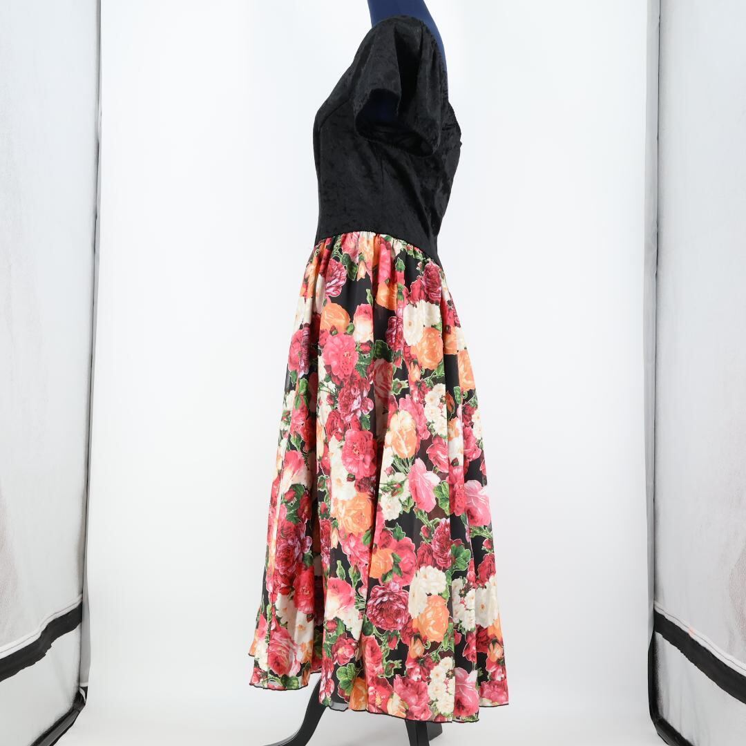【日本製 フラダンス衣装】ブラック ALOHA STANDARDS アロハスタンダード ワンピース ドレス 花柄 赤 白 鮮やか ベロア 可愛い