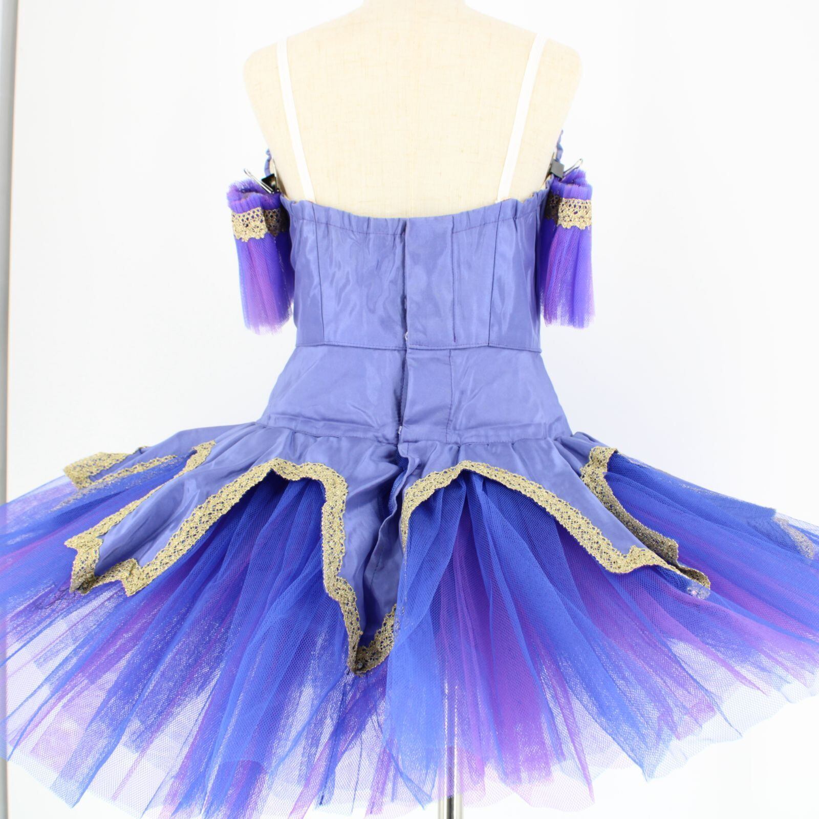 【美品 バレエ衣装】パープル ballerina バレリーナ チュチュ 紫 ブルー 青 フリル 発表会 パーティ 劇 ビーズ クラッシック