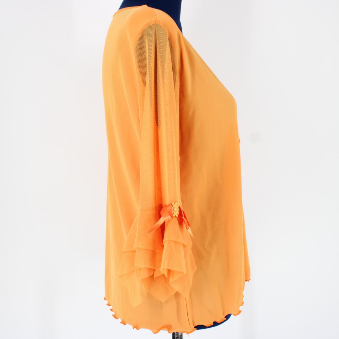 【社交ダンス衣装】トップス Blue-one Lサイズ オレンジ 華やか 上品 ラインストーン 蝶々 かわいい 可愛い レッスン着