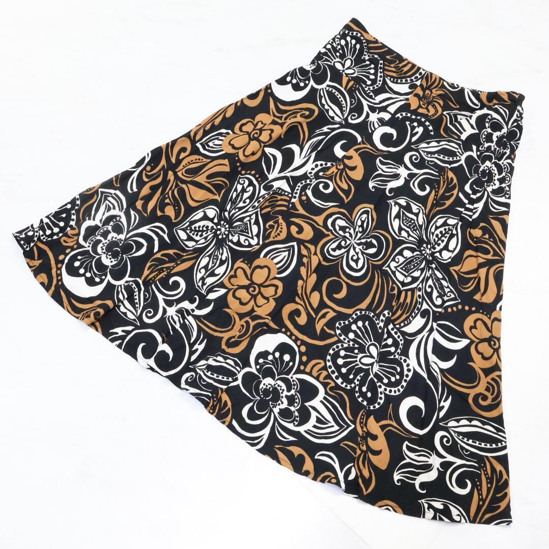 【日本製 フラダンス衣装】ブラック nanipua ナニプア スカート タヒチアン 花柄 茶 白 紐 ゴム 華やか 鮮やか アロハ 可愛い