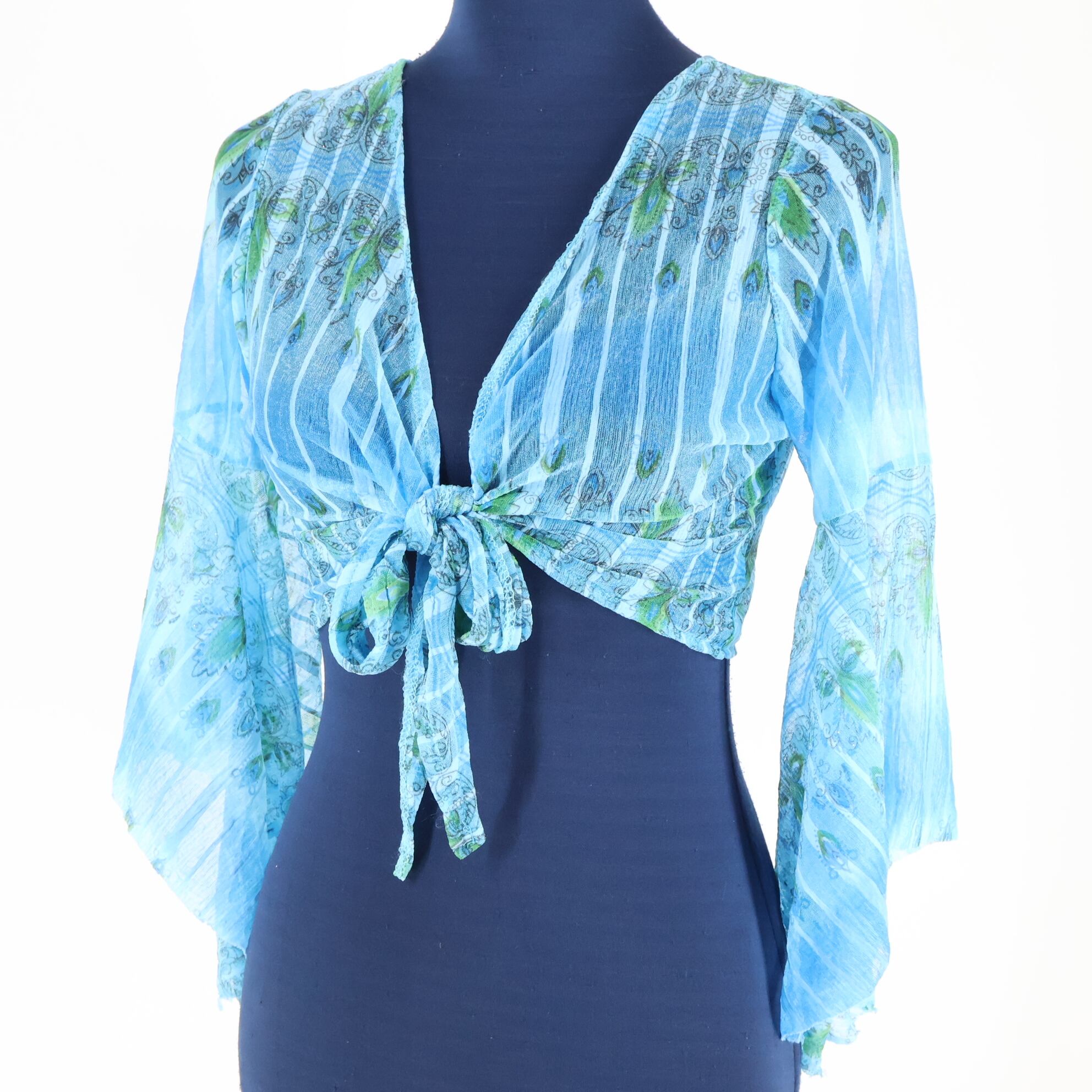 【ベリーダンス衣装 まとめ売り】チョリ トップス スカーフ 全4点セット 水色 花柄 黄緑 アイボリー ラメ レース レッスン着