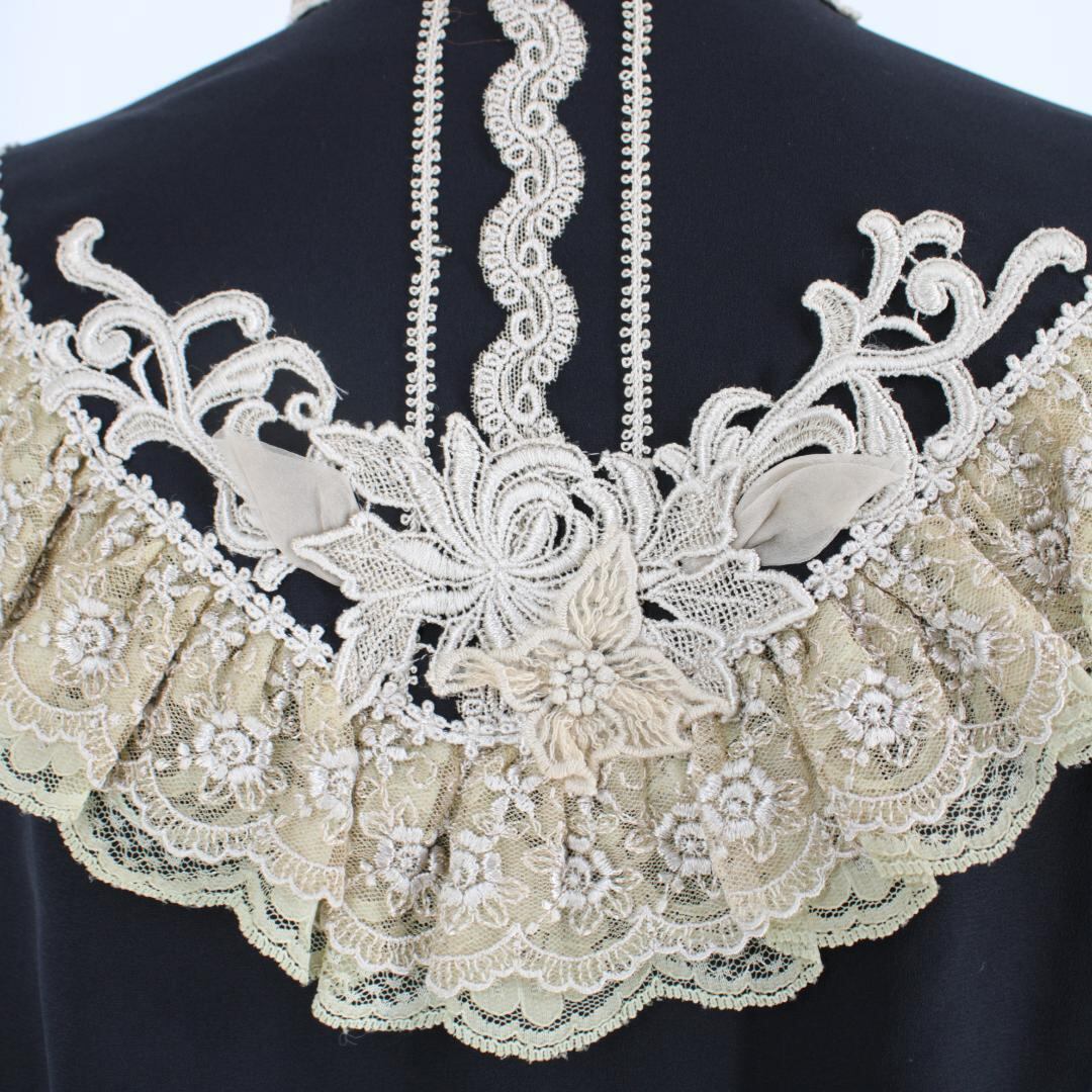 【美品 レディースファッション】ブラック へっぽこ先生 上下セット ツーピース セットアップ 黒 ゴールド 高級感 レース 上品