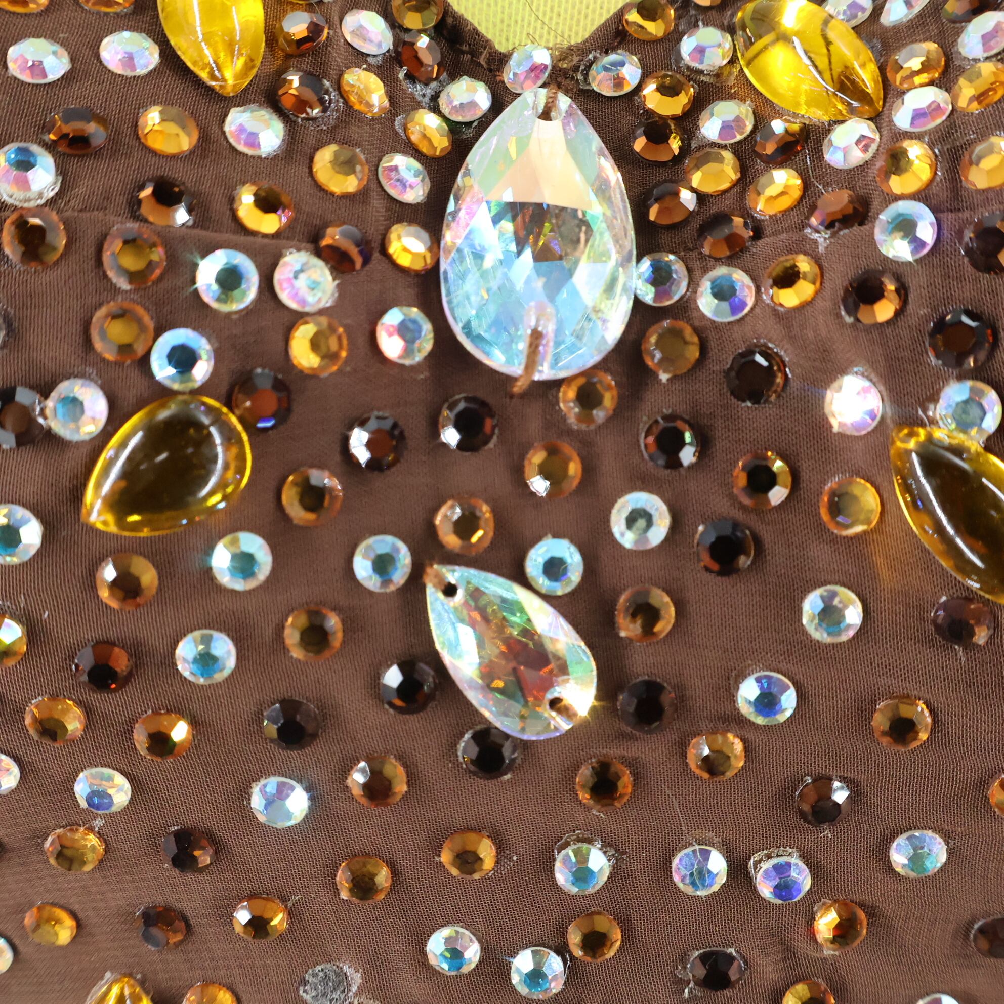 【社交ダンス衣装】ブラウン Dance fashion design room ワンピース ドレス 茶色 イエロー 黄色 ファー フリル ボリューム