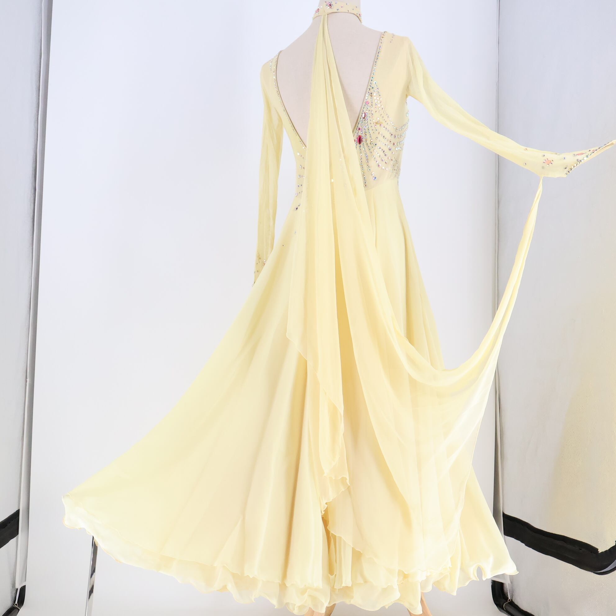 #社交ダンス #社交ダンス衣装 #ダンスドレス #ワンピースドレス #イエロー #アイボリー #女性らしい #上品デザイン #フロート #スカート3枚重ね #エレガント #ダンスファッション #パフォーマンス衣装 #ダンスコスチューム #ステージ衣装 #ダンスパフォーマンス #ステージ映え #ダンサー #舞台衣装 #フロア映え #古着 #中古 #ENUTSU