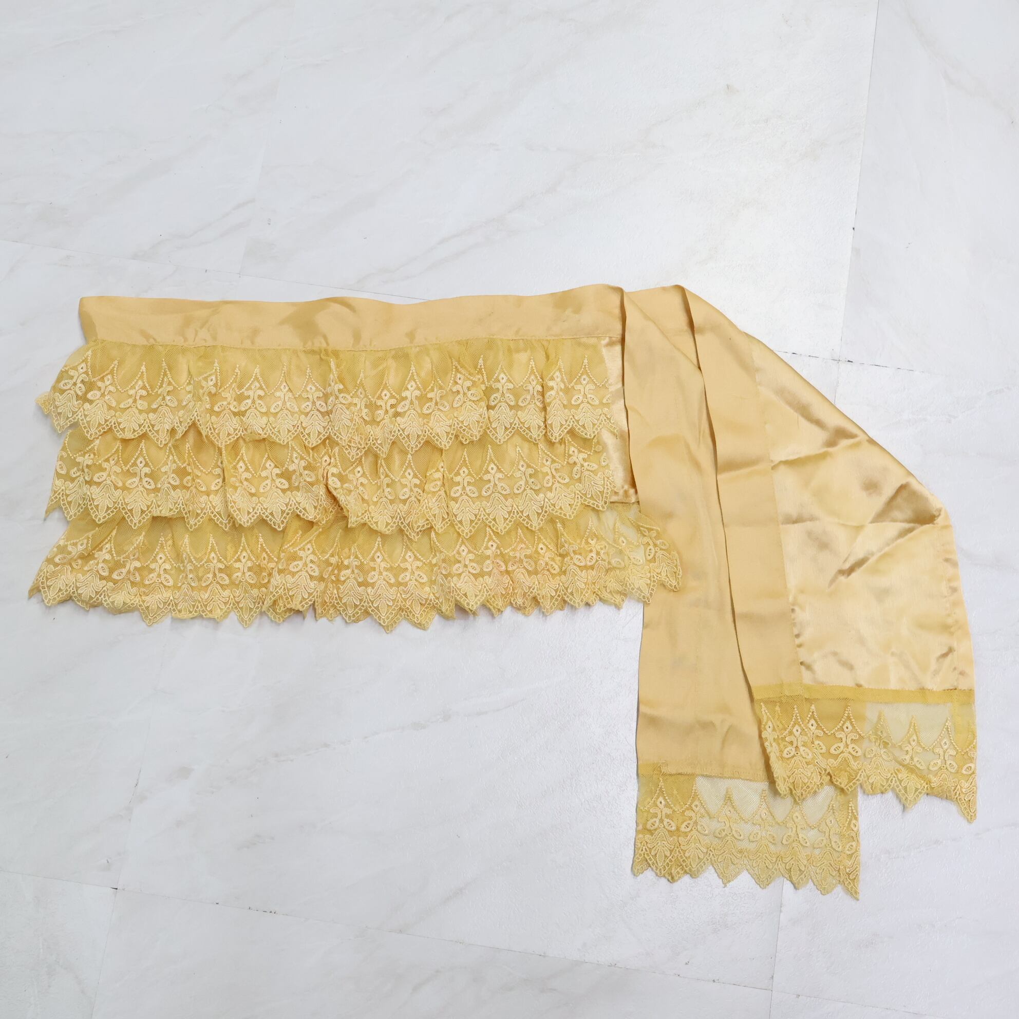 【ベリーダンス用 オリエンタル衣装】クリーム色 スカート スカーフ レース サテン生地 薄黄色 光沢 2点セット 柄 可愛い