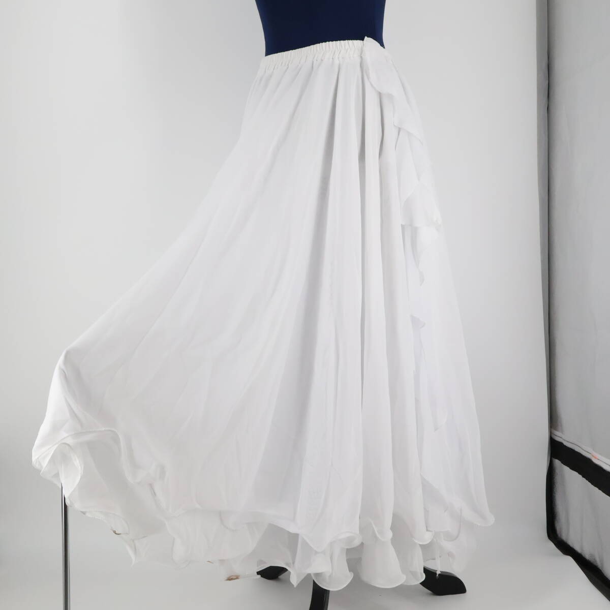 【ベリーダンス用 オリエンタル衣装】ホワイト スカート レース生地 2枚重ね 真っ白 無地 シンプル 爽やか スリット フリル