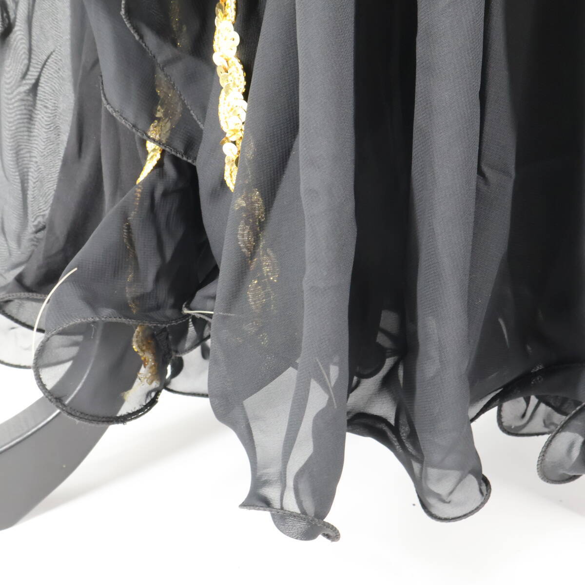 【ベリーダンス用 オリエンタル衣装】ブラック スカート スパンコールラメ 真っ黒 ゴールド レース生地 フリル 綺麗 スリット