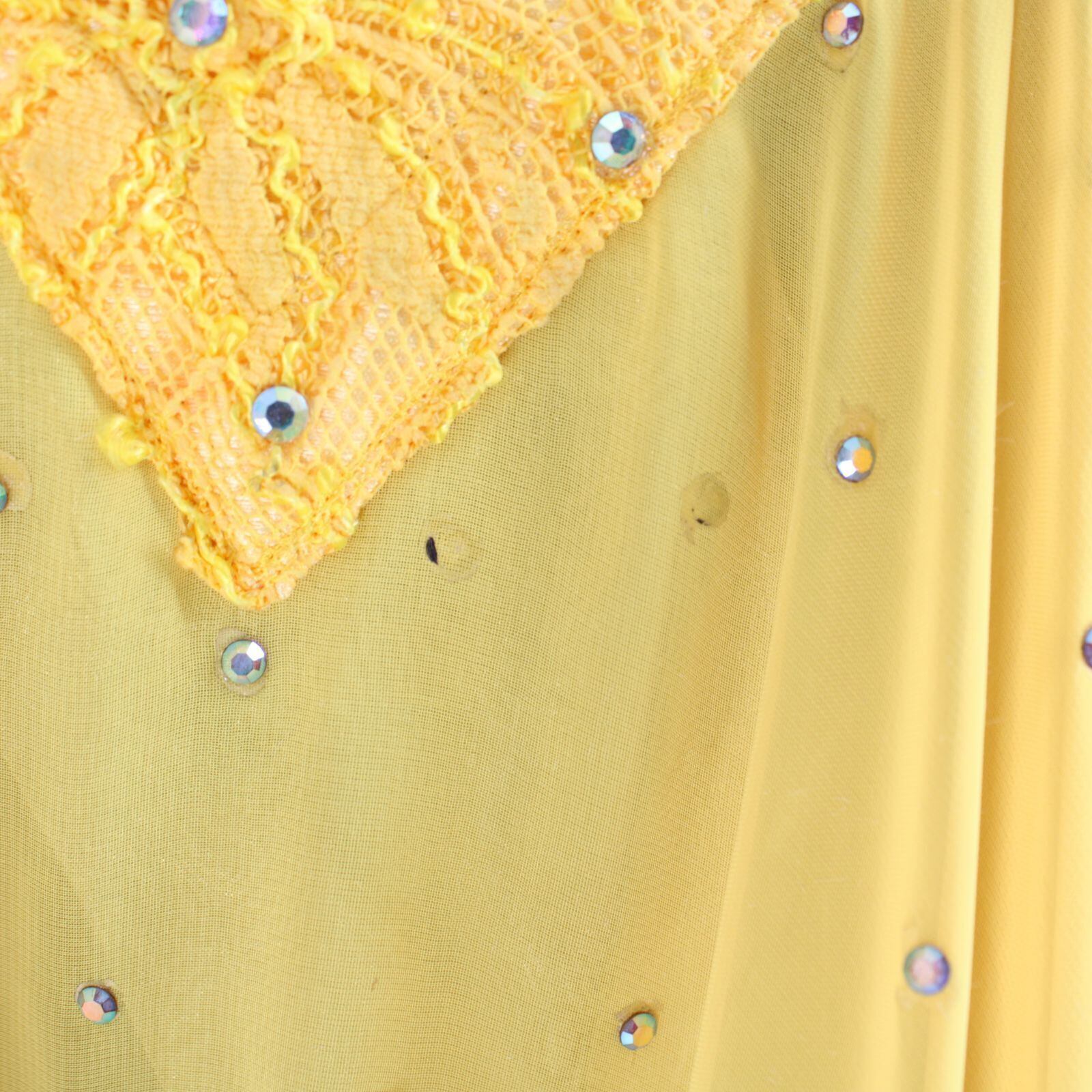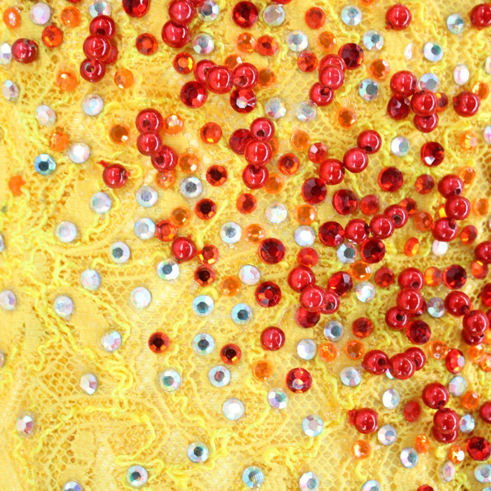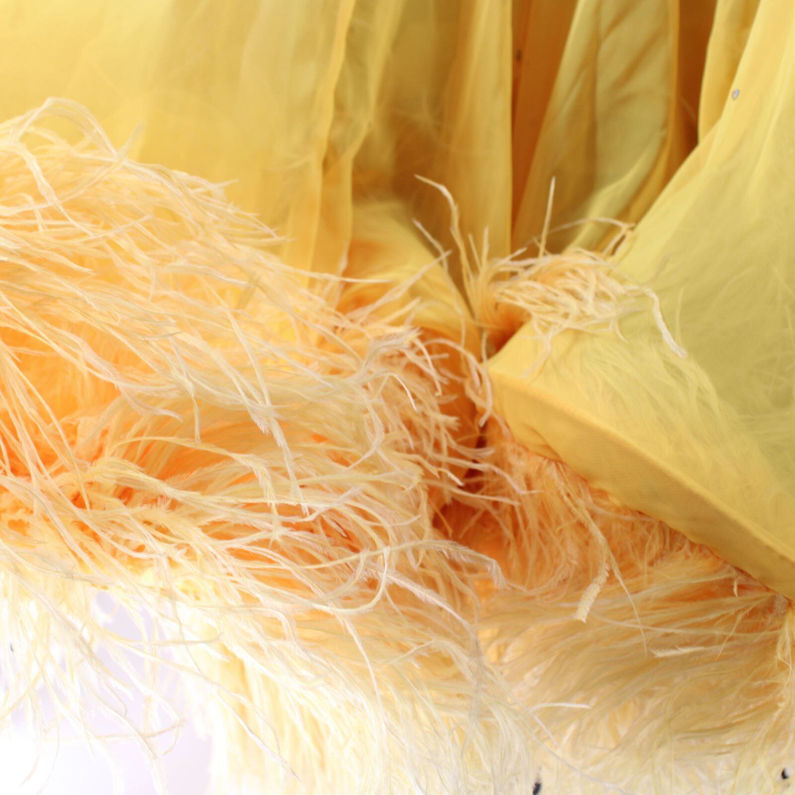 【社交ダンス衣装】イエロー ワンピース ドレス ファー フリル 黄色 レース デモ 競技用 パーティ 発表会 オレンジ ボリューム