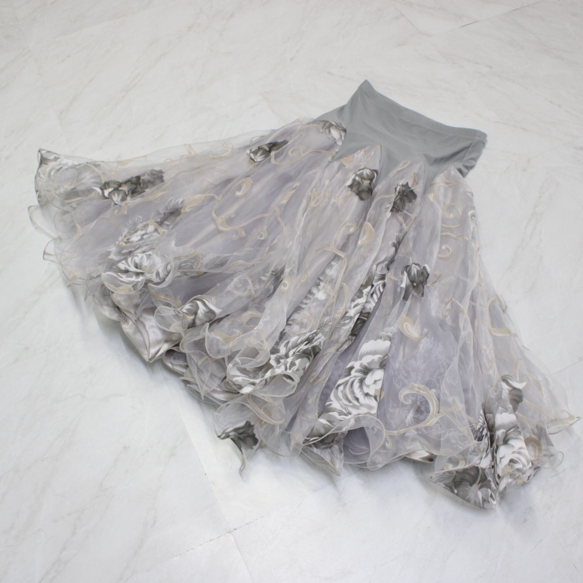 #社交ダンス衣装 #スカート #花柄 #ライトグレー #ボリュームスカート #透け感 #エレガント #ダンススタイル #ダンスファッション #華やか #軽やか #ダンスコーデ #パフォーマンス #フロア映え #ダンスウェア #ダンス衣装 #ダンスコスチューム #ステージ衣装 #古着 #中古 #ENUTSU