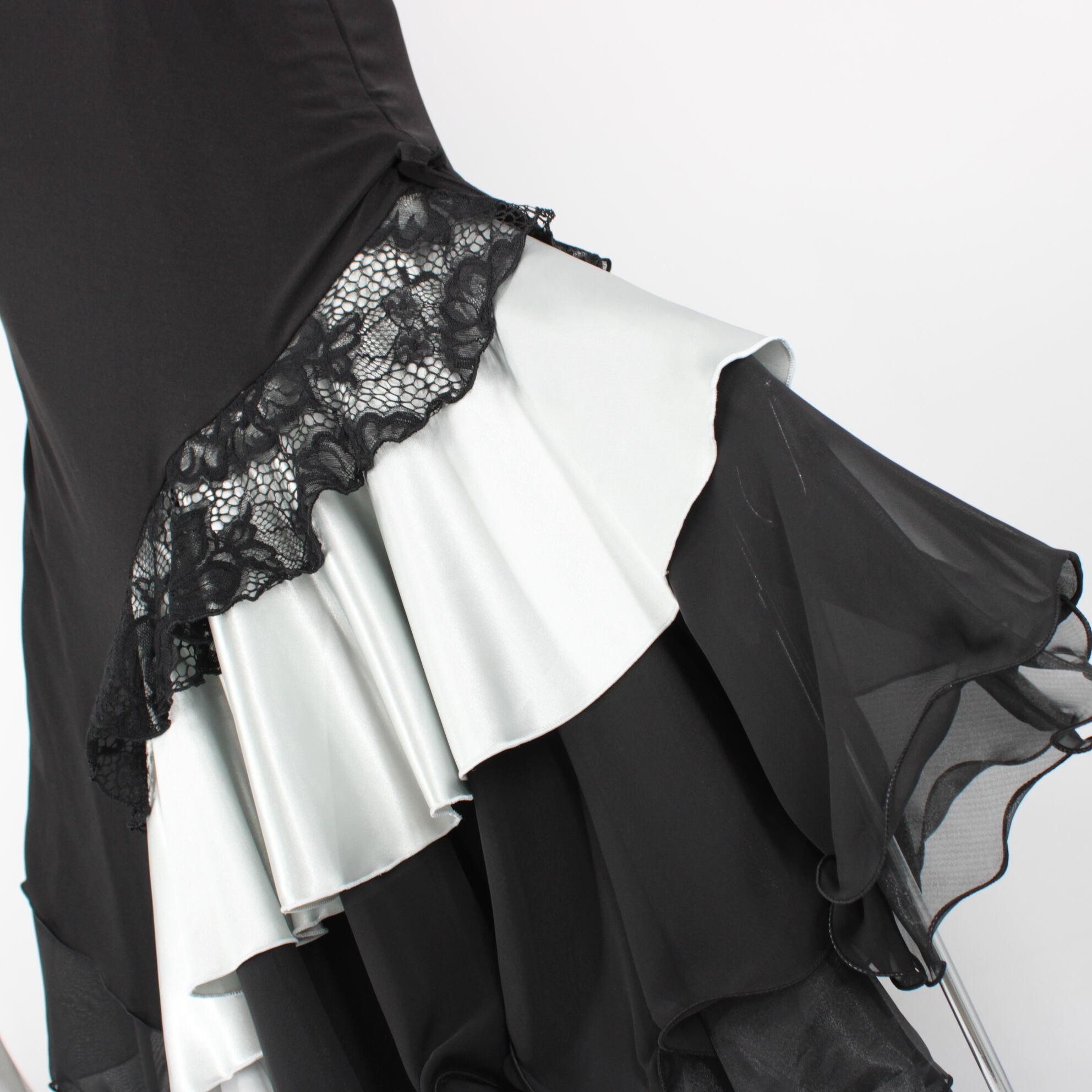 【美品 社交ダンス衣装】スカート レッスンウェア Mサイズ Lサイズ 黒 白 ブラック ホワイト レース フリル 華やか 派手 上品