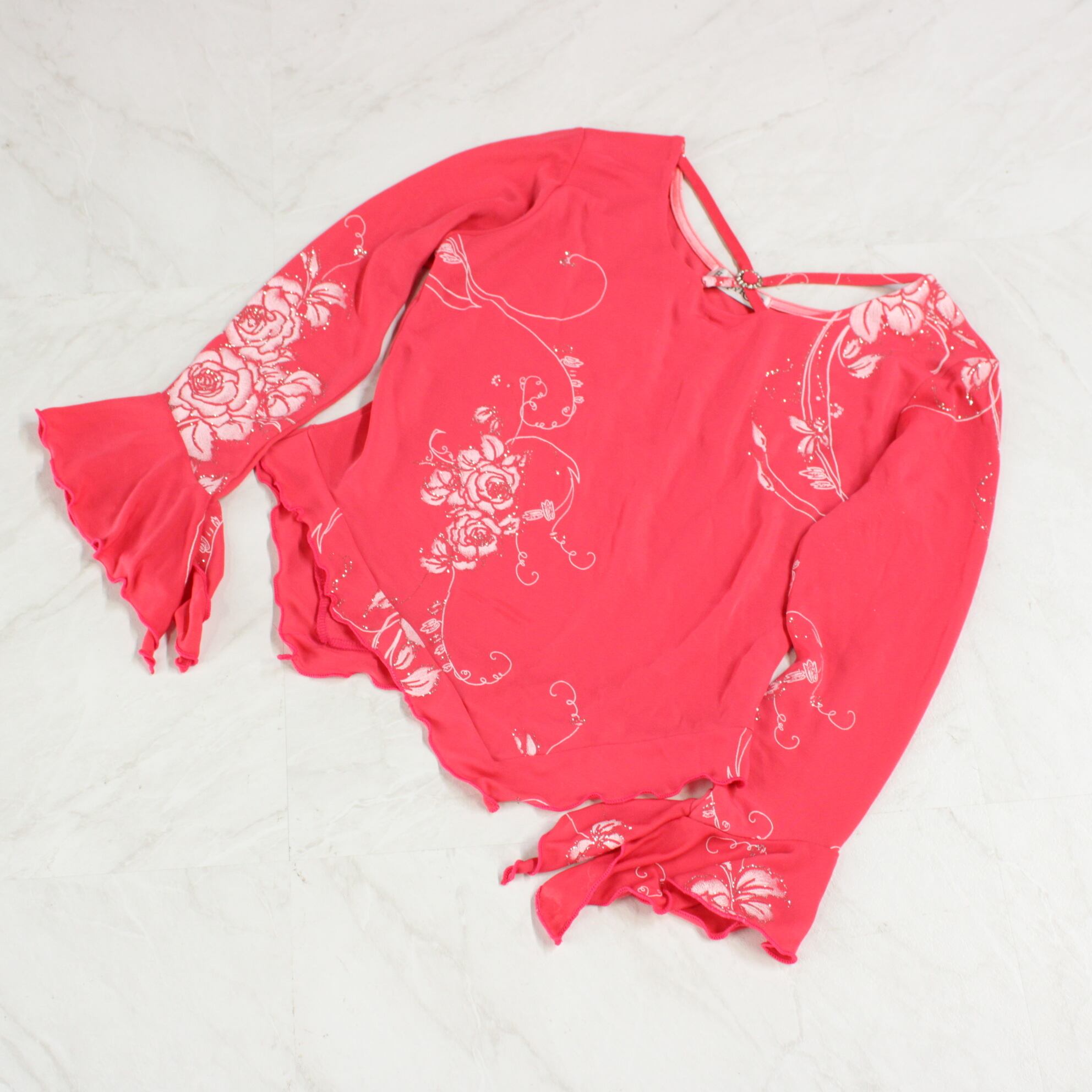 【社交ダンス衣装】トップス レッスンウェア 練習着 ピンク ラメ HAPPY ROAD 花柄 かわいい 鮮やか 華やか 可愛い 清楚