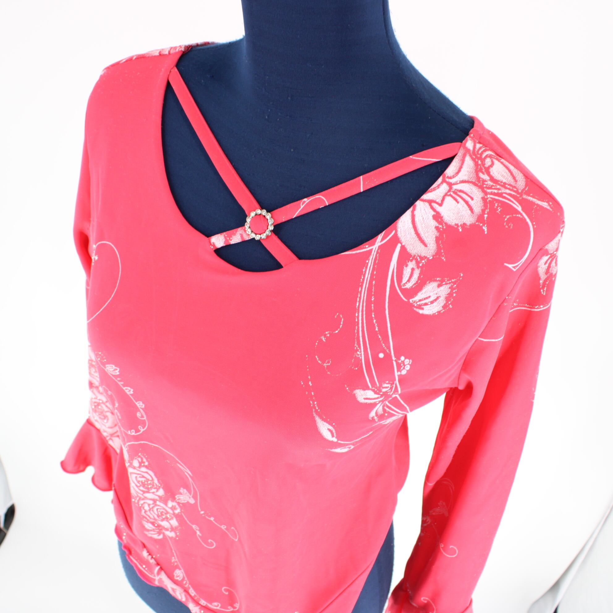 #社交ダンス #ダンストップス #ピンクトップス #ラメ付き #エレガントスタイル #華やか #舞台映え #動きやすい #上品デザイン #ダンスファッション #ダンス衣装 #ダンスコスチューム #ステージ衣装 #古着 #中古 #ENUTSU