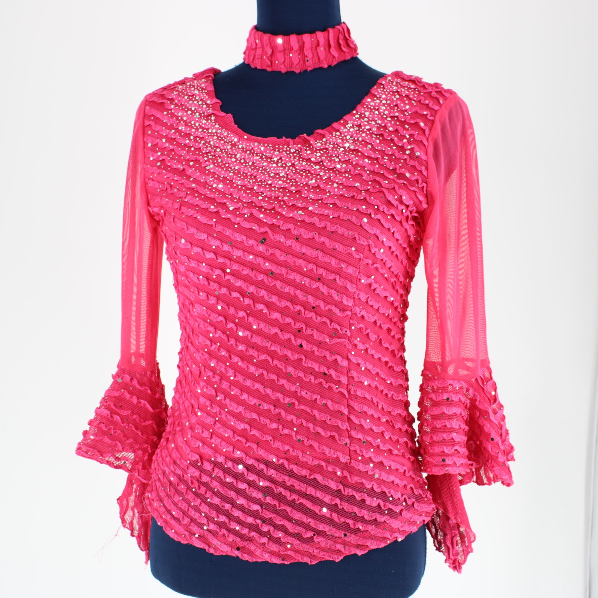 【美品 社交ダンス衣装】トップス レッスンウェア 練習着 ピンク 濃いピンク マゼンダ ICHIOKU イチオク ホログラム かわいい